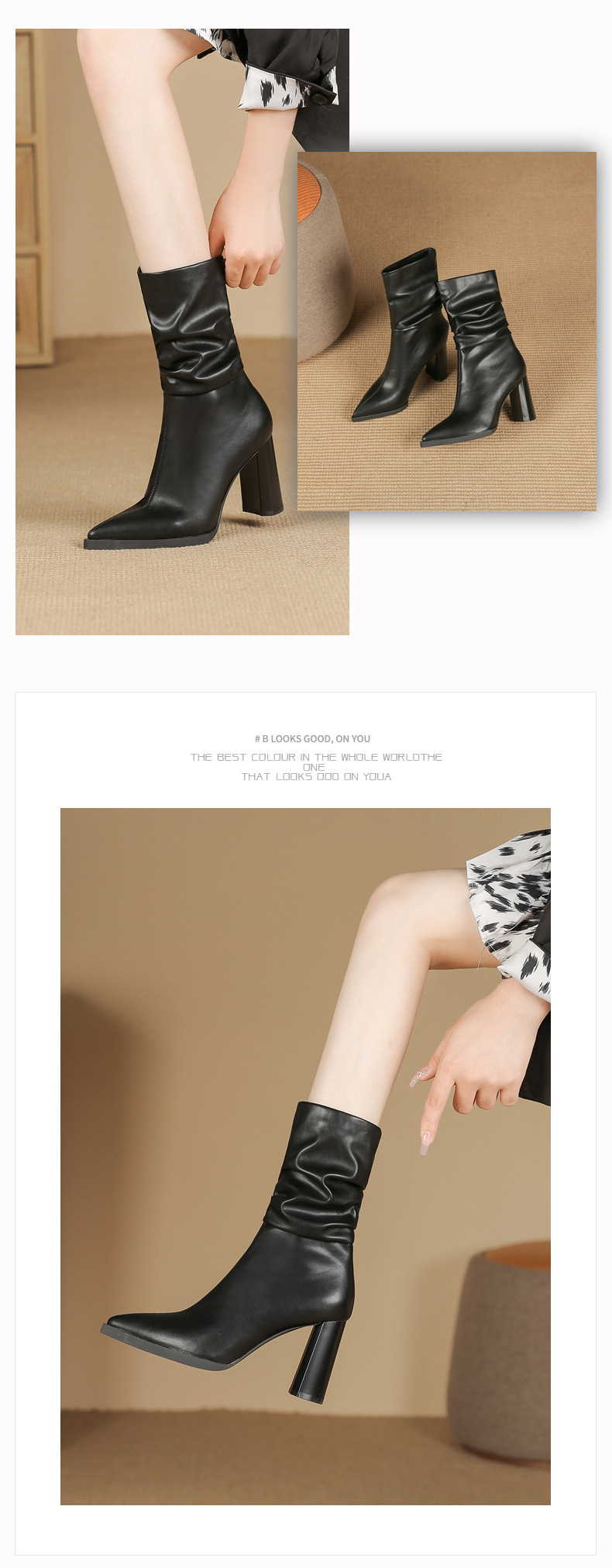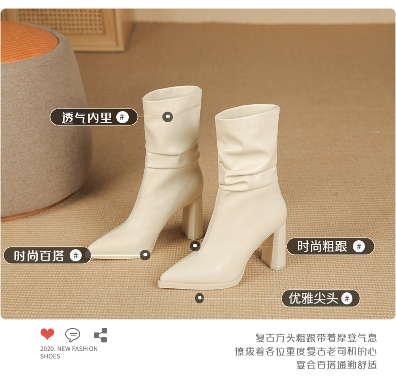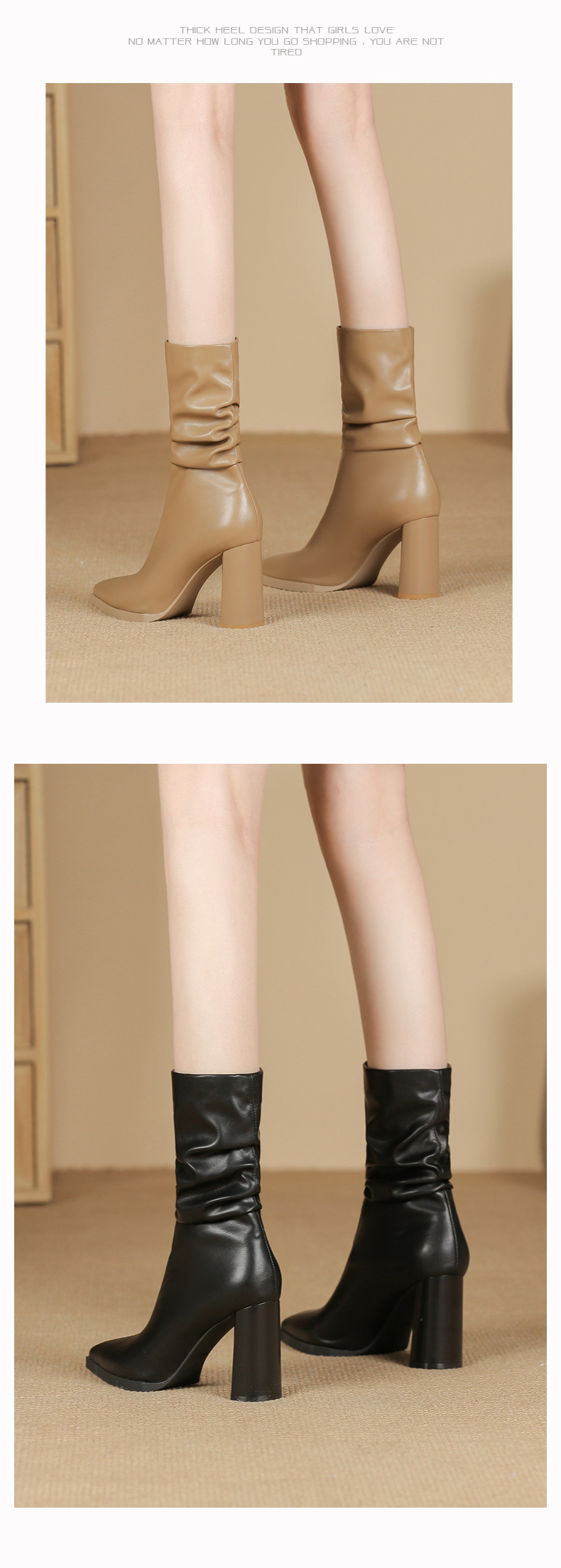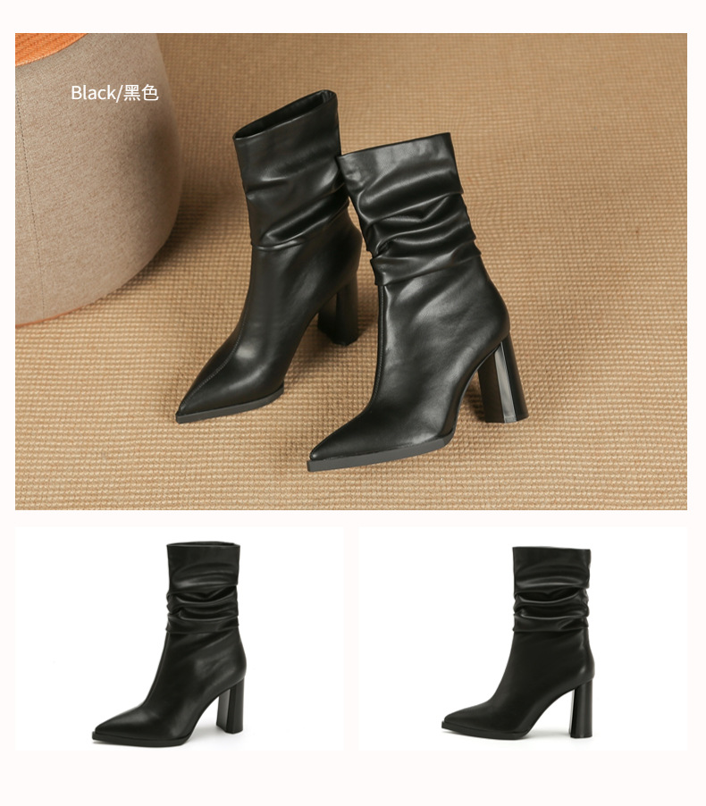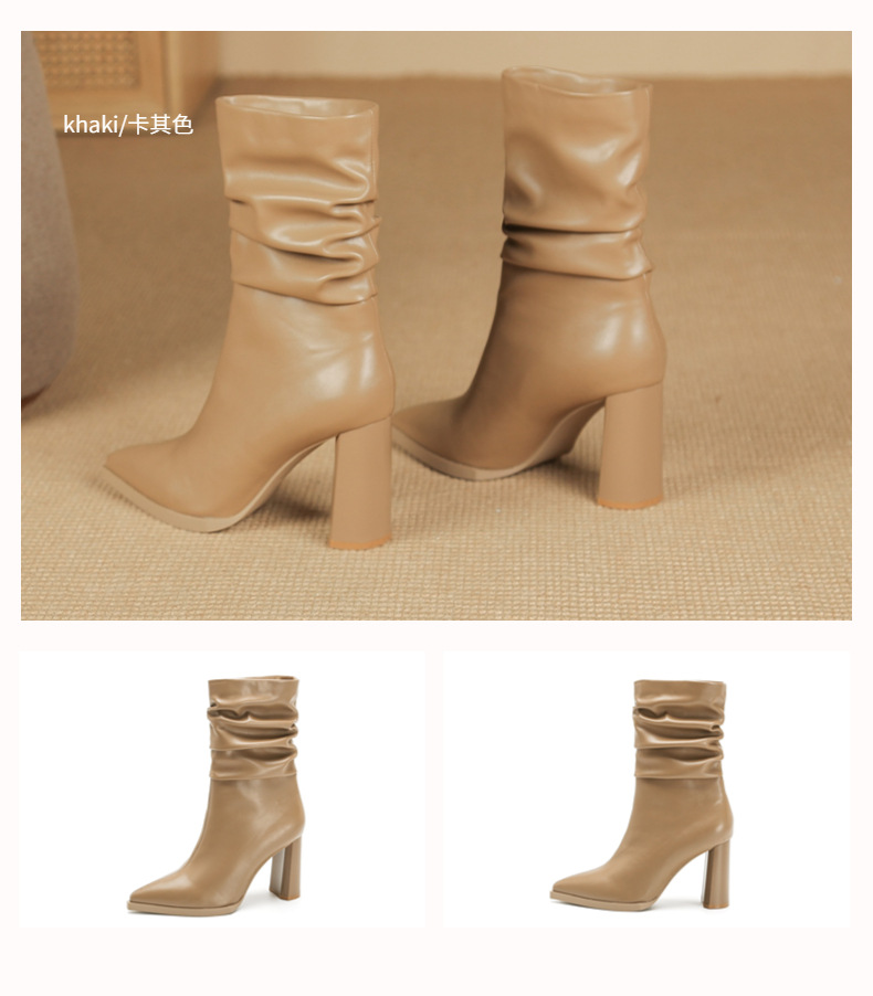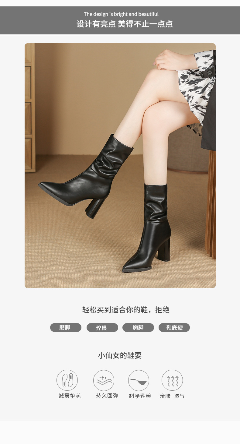 Y3911-2 에나멜 가죽 미드 배럴 가을과 겨울 새로운 스태킹 부츠 얇은 부츠 두꺼운 굽 뾰족한 하이힐 짧은 부츠 여성 부츠스토어 가기