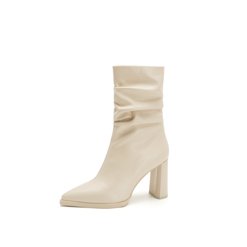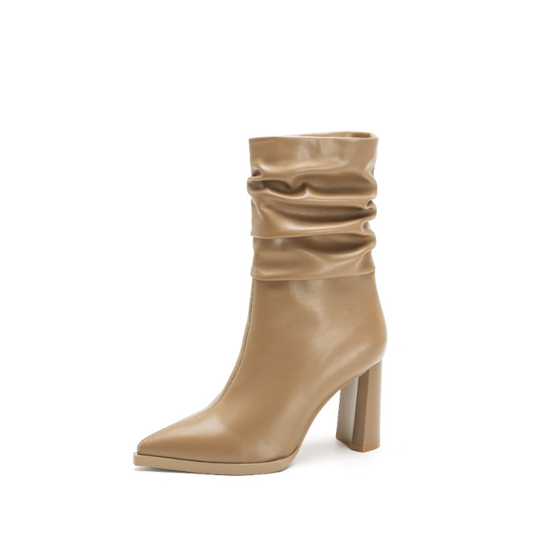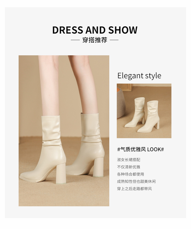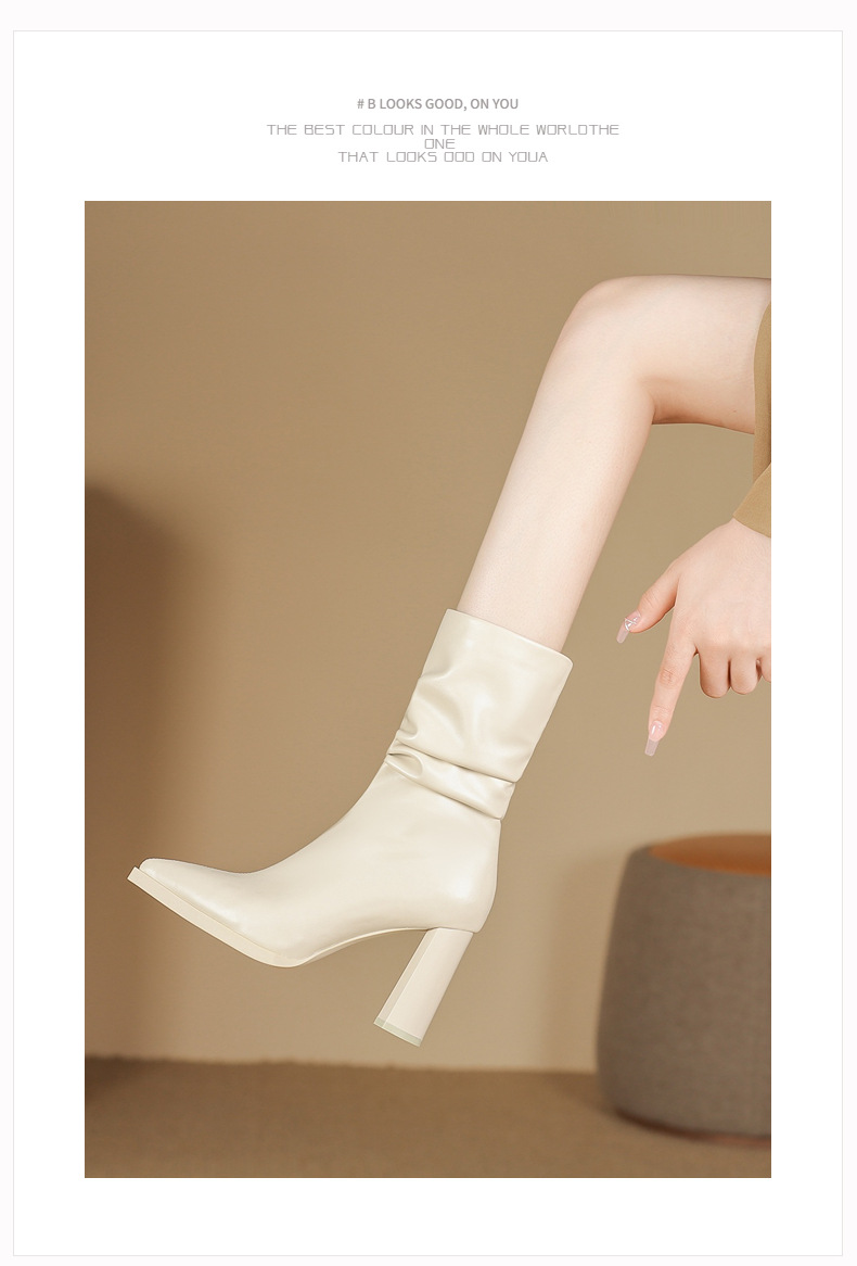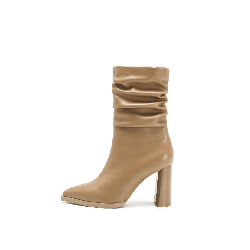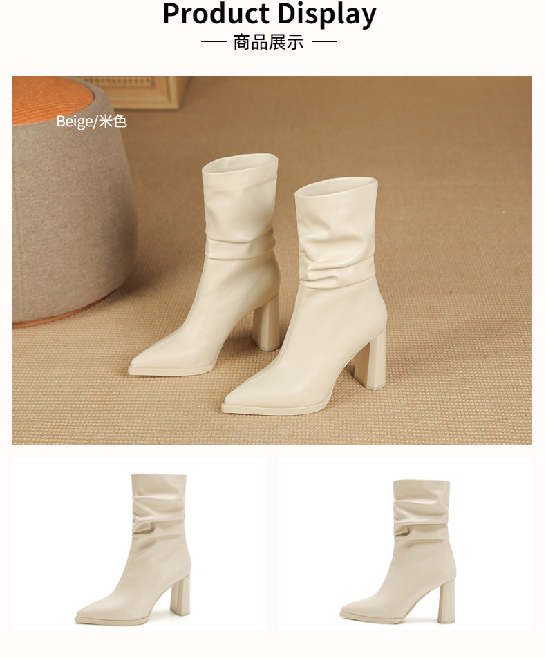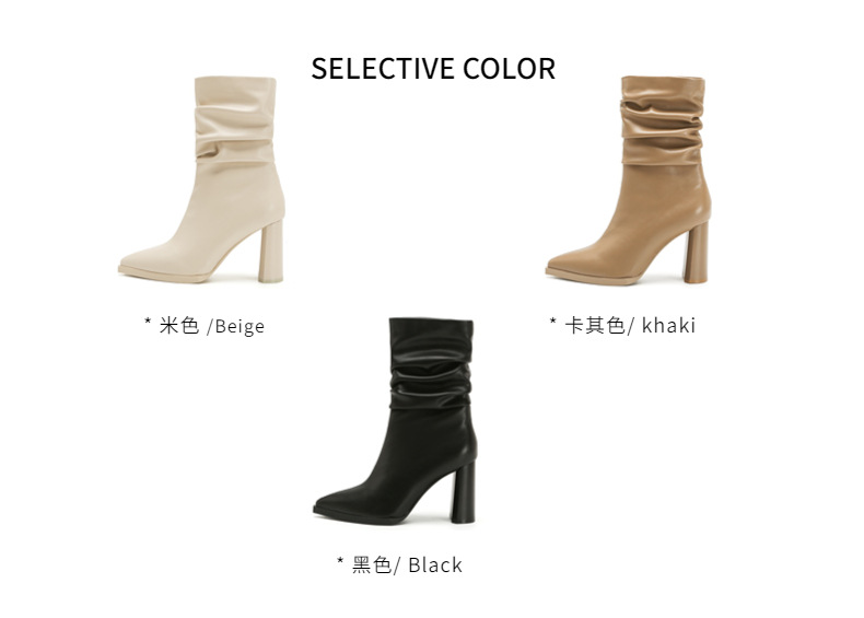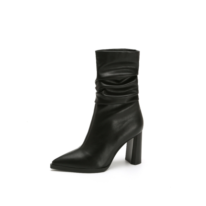 Y3911-2 에나멜 가죽 미드 배럴 가을과 겨울 새로운 스태킹 부츠 얇은 부츠 두꺼운 굽 뾰족한 하이힐 짧은 부츠 여성 부츠스토어 가기