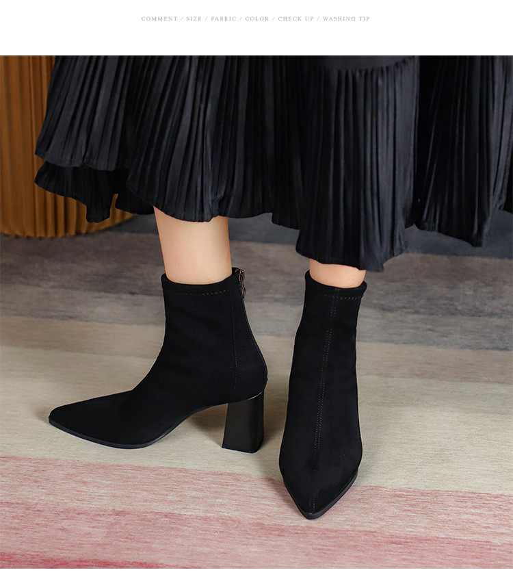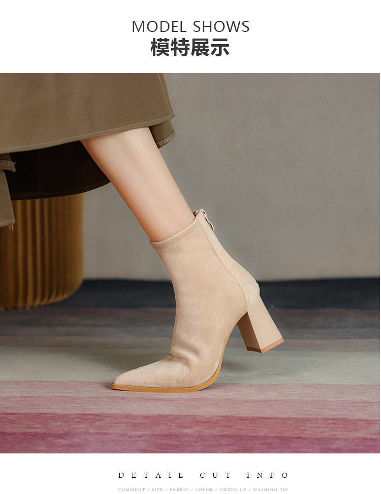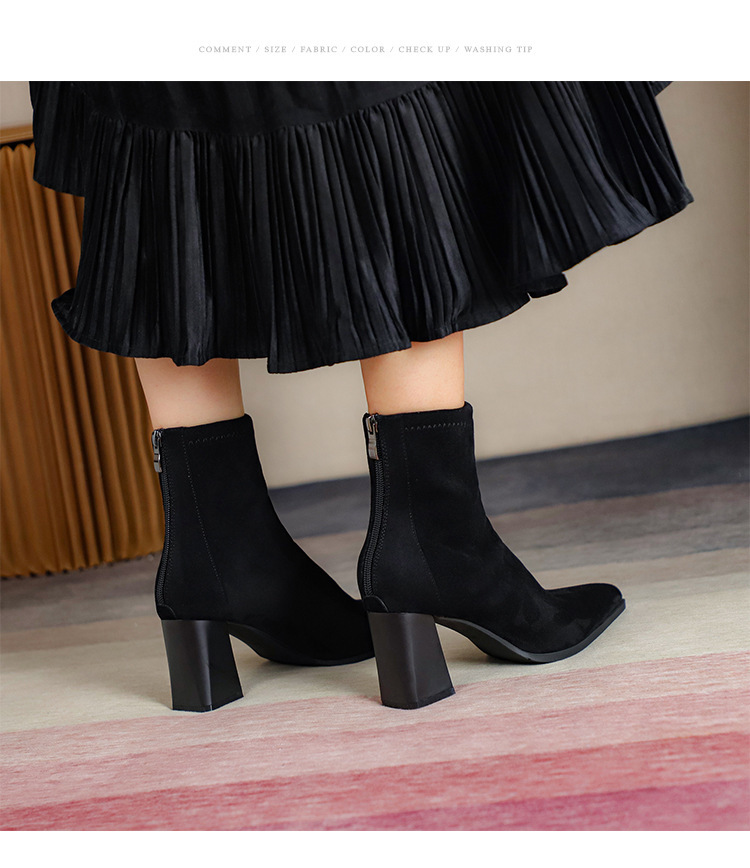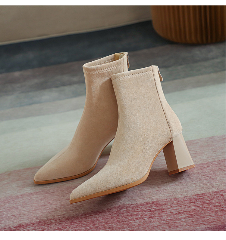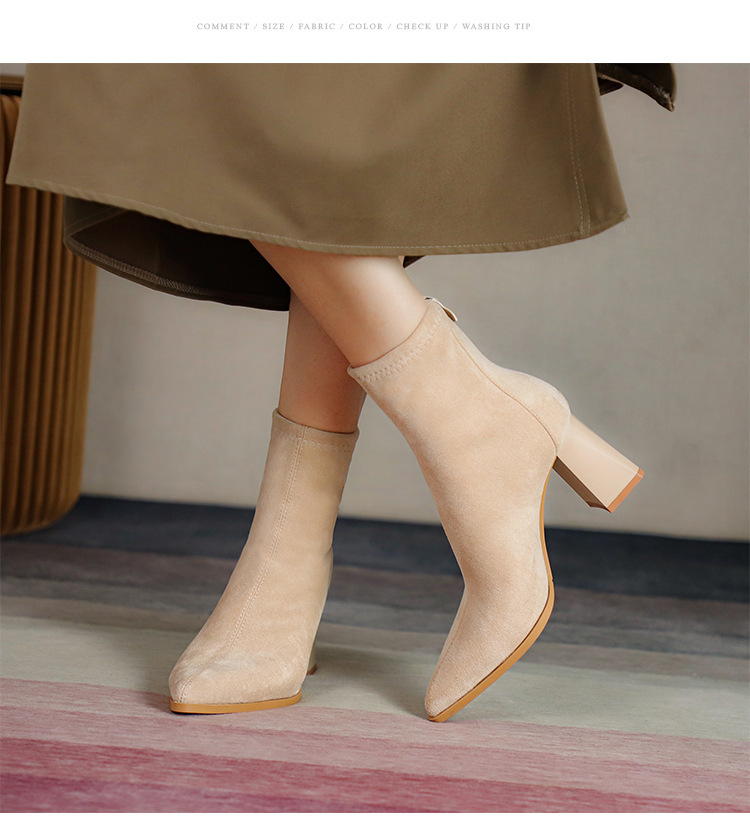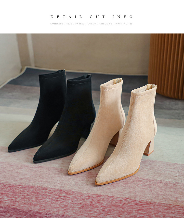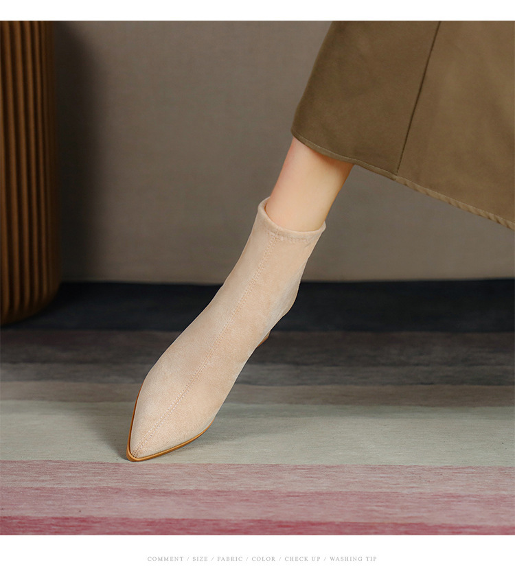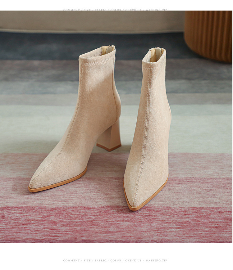 겨울 여성 신발 간단한 낮은 부츠 화이트 프랑스 작은 짧은 부츠 여성용 얇은 부츠 두꺼운 발 뒤꿈치 뾰족한 하이힐 도매