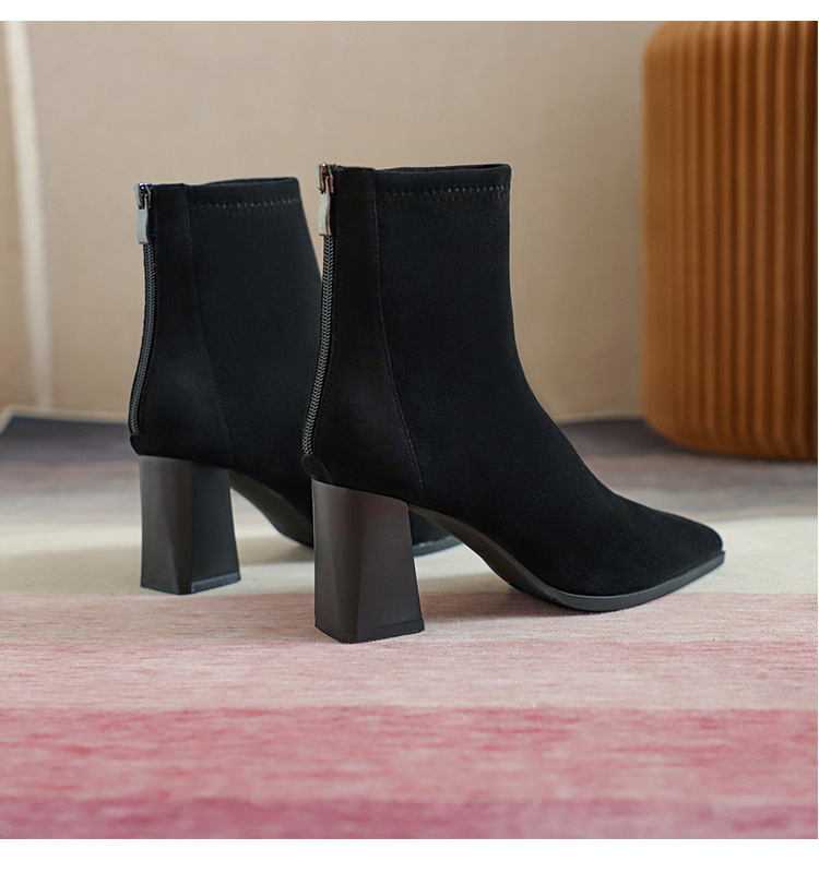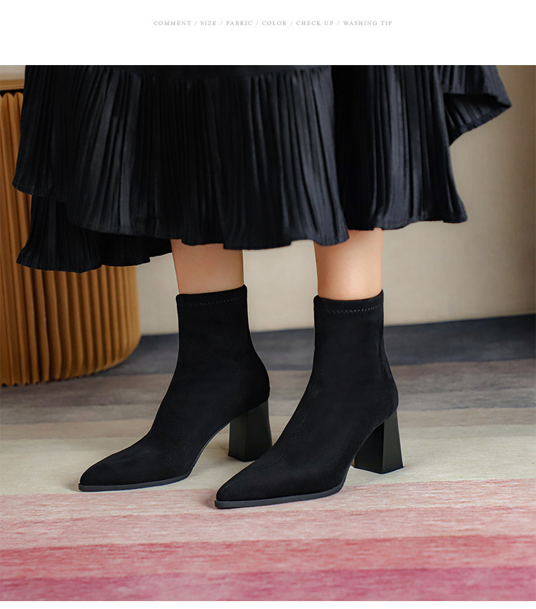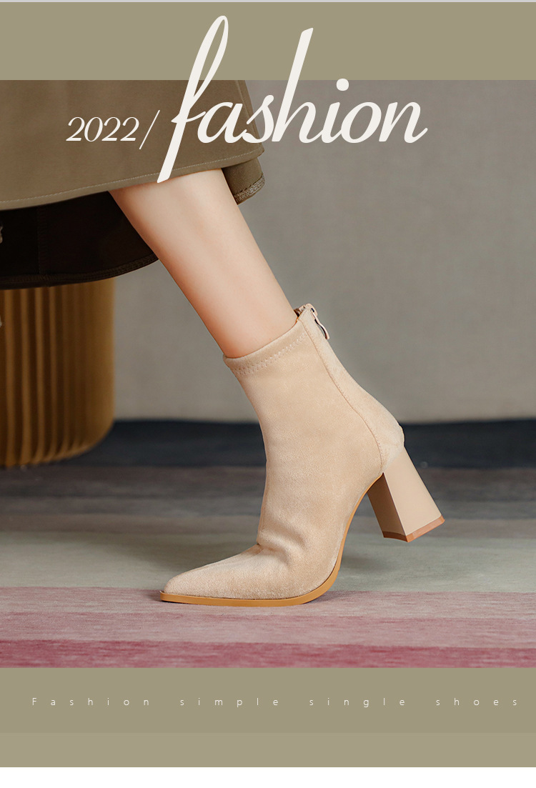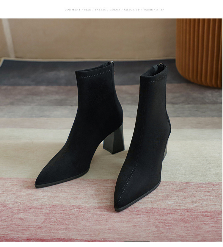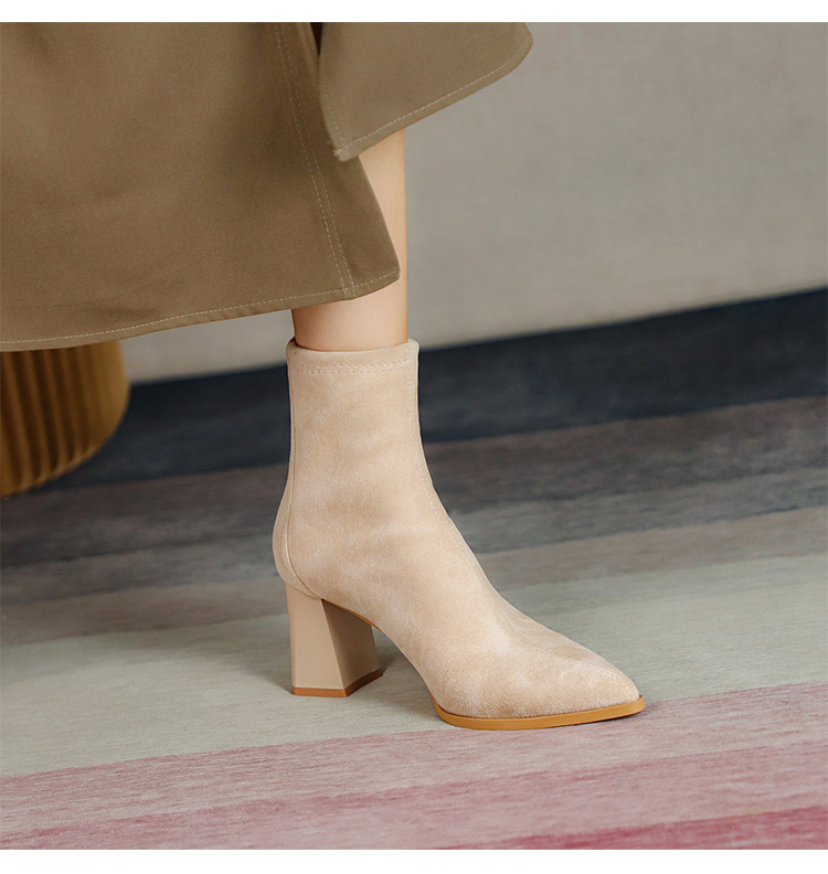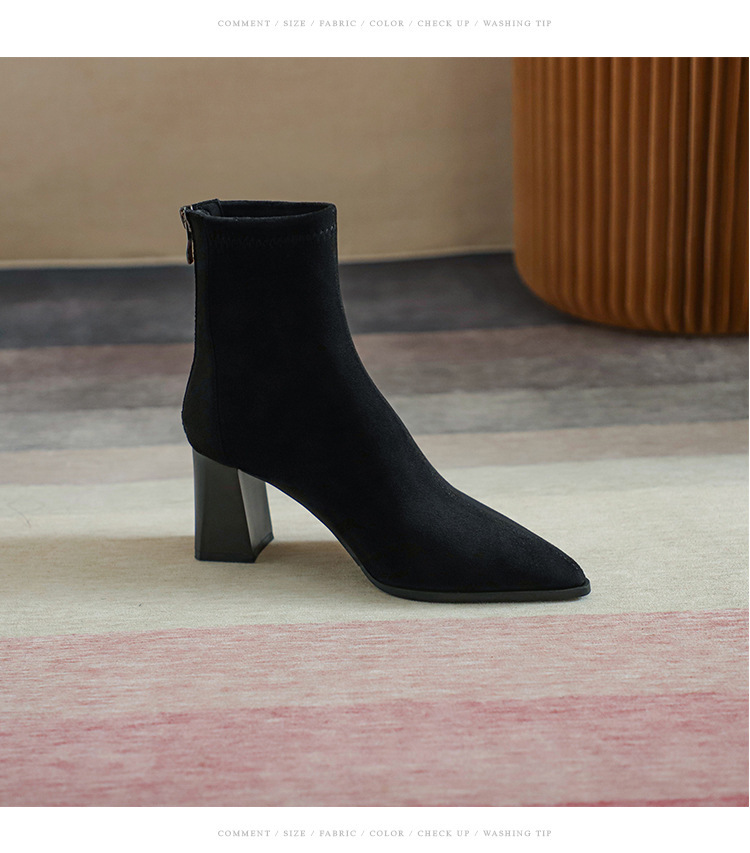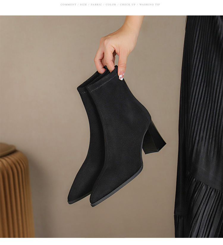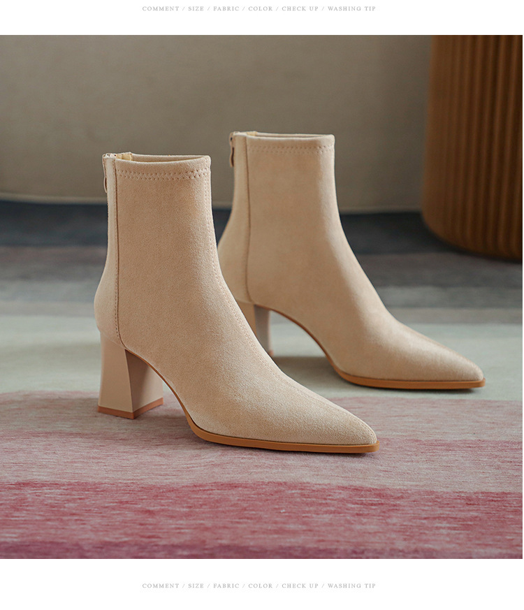 겨울 여성 신발 간단한 낮은 부츠 화이트 프랑스 작은 짧은 부츠 여성용 얇은 부츠 두꺼운 발 뒤꿈치 뾰족한 하이힐 도매