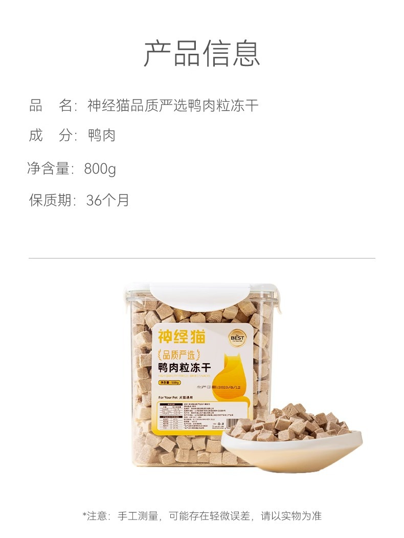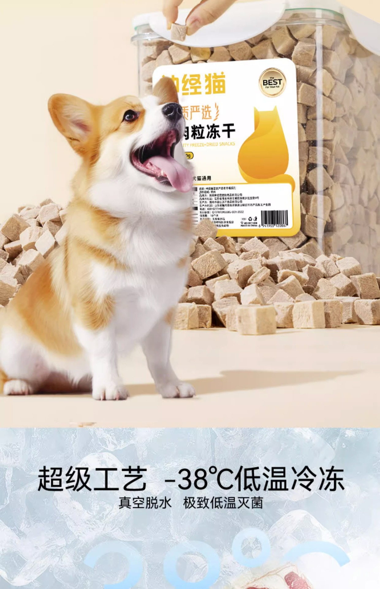 개 선택 품질 오리 동결 말린 배럴 중형 및 소형 개 어금니 치킨 과립 고양이 애완 동물 사료 테디 간식