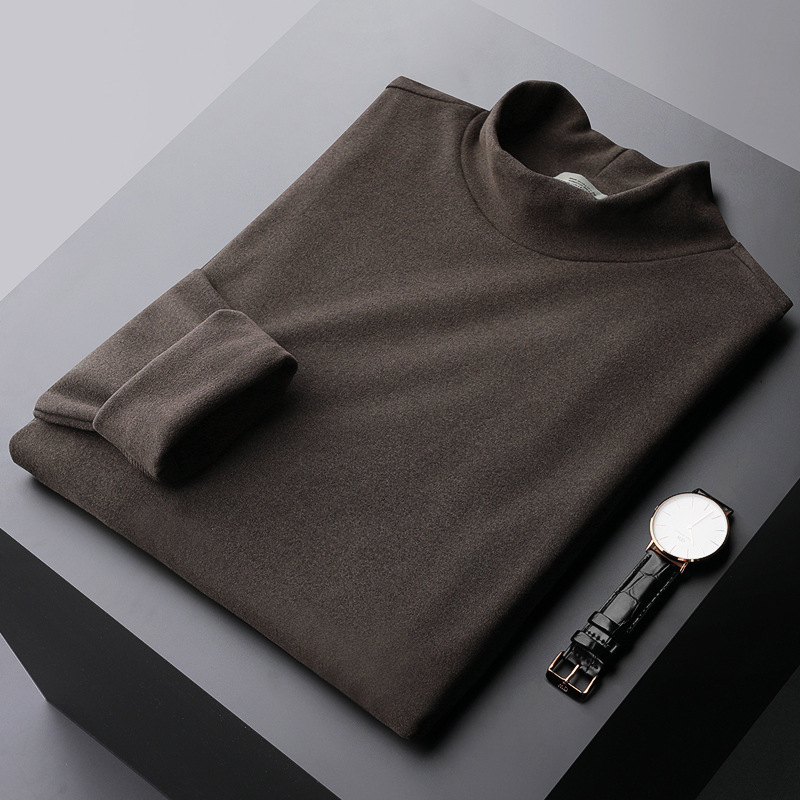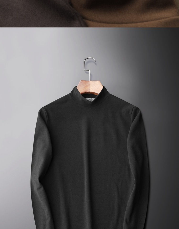 남성용 하프 하이 칼라 베이스 셔츠 고급 벨벳 미드 칼라 긴팔 티셔츠 2022 가을과 겨울 청소년 웜 탑