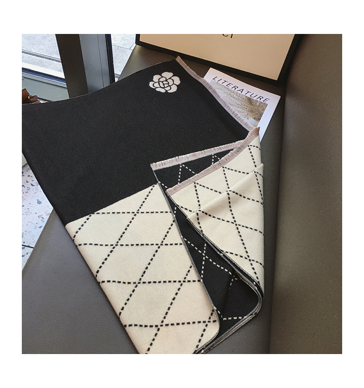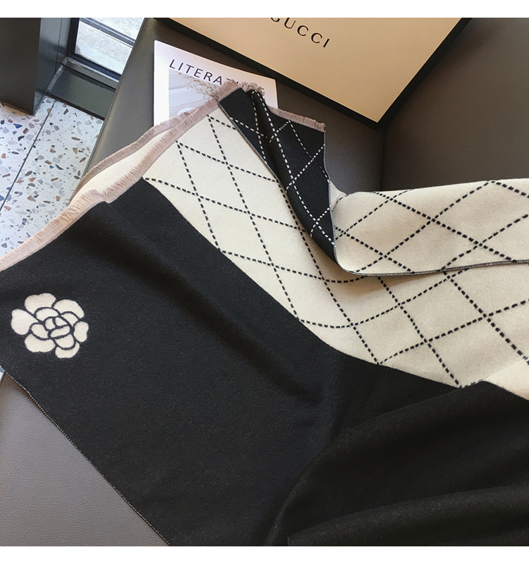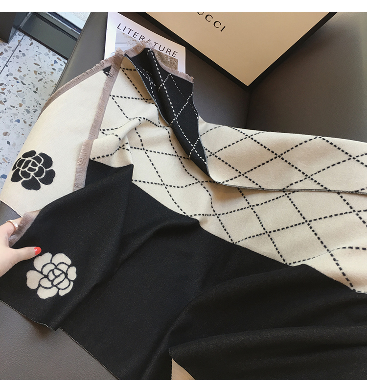 스카프 여성용 겨울 샤넬 동백 모조 캐시미어 스카프 숄 이중 사용 따뜻한 목 기질 양면 숄