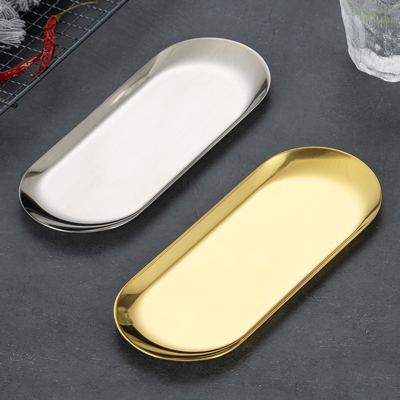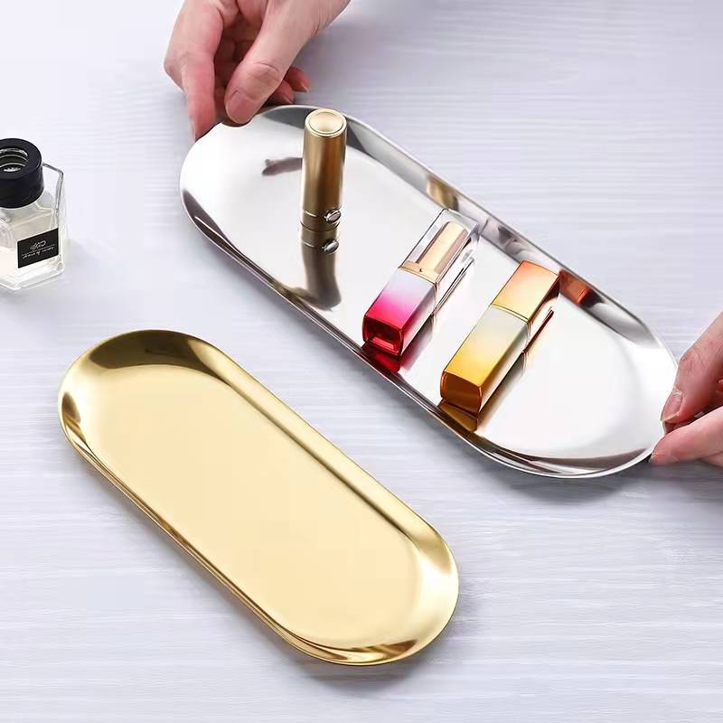 한국어 스타일 스테인레스 스틸 보석 트레이 탁상 보관 트레이 화장품 보석 트레이 금속 트레이 도매