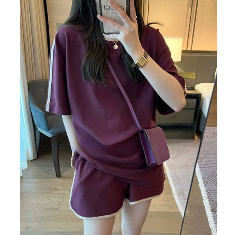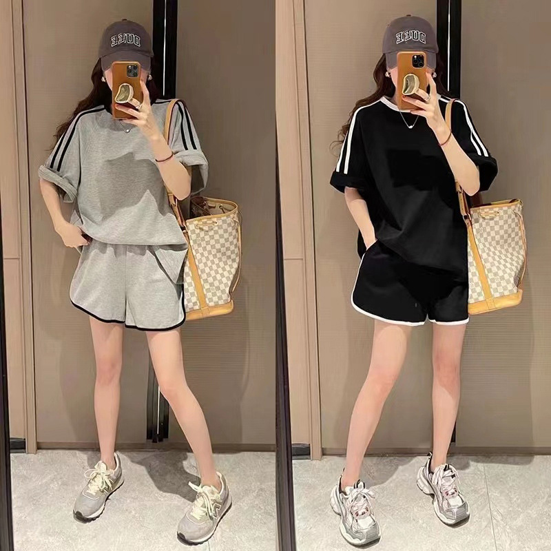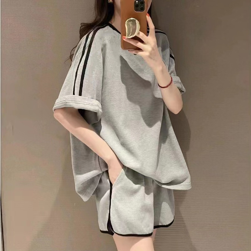 대외 무역 여름 의류는 여성을 위한 캐주얼 스포츠 슈트, 루즈한 런닝 패션 반팔 반바지 투피스 세트와 짝을 이룹니다.스토어 가기