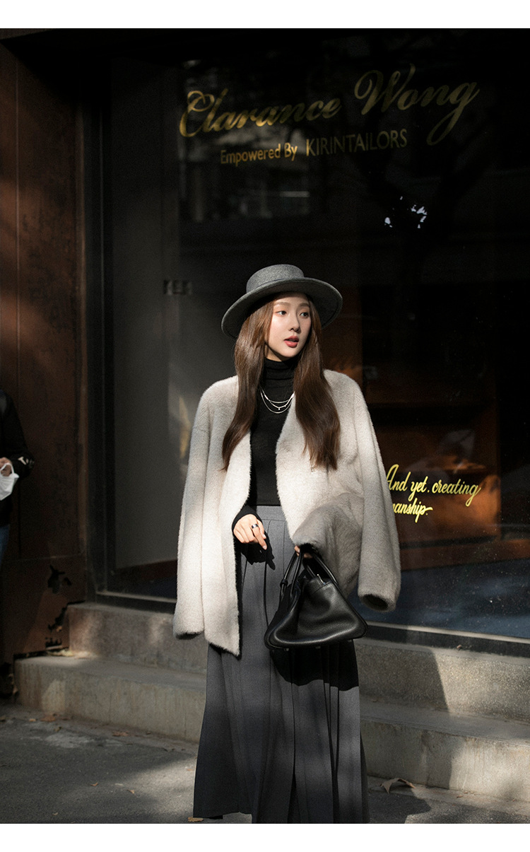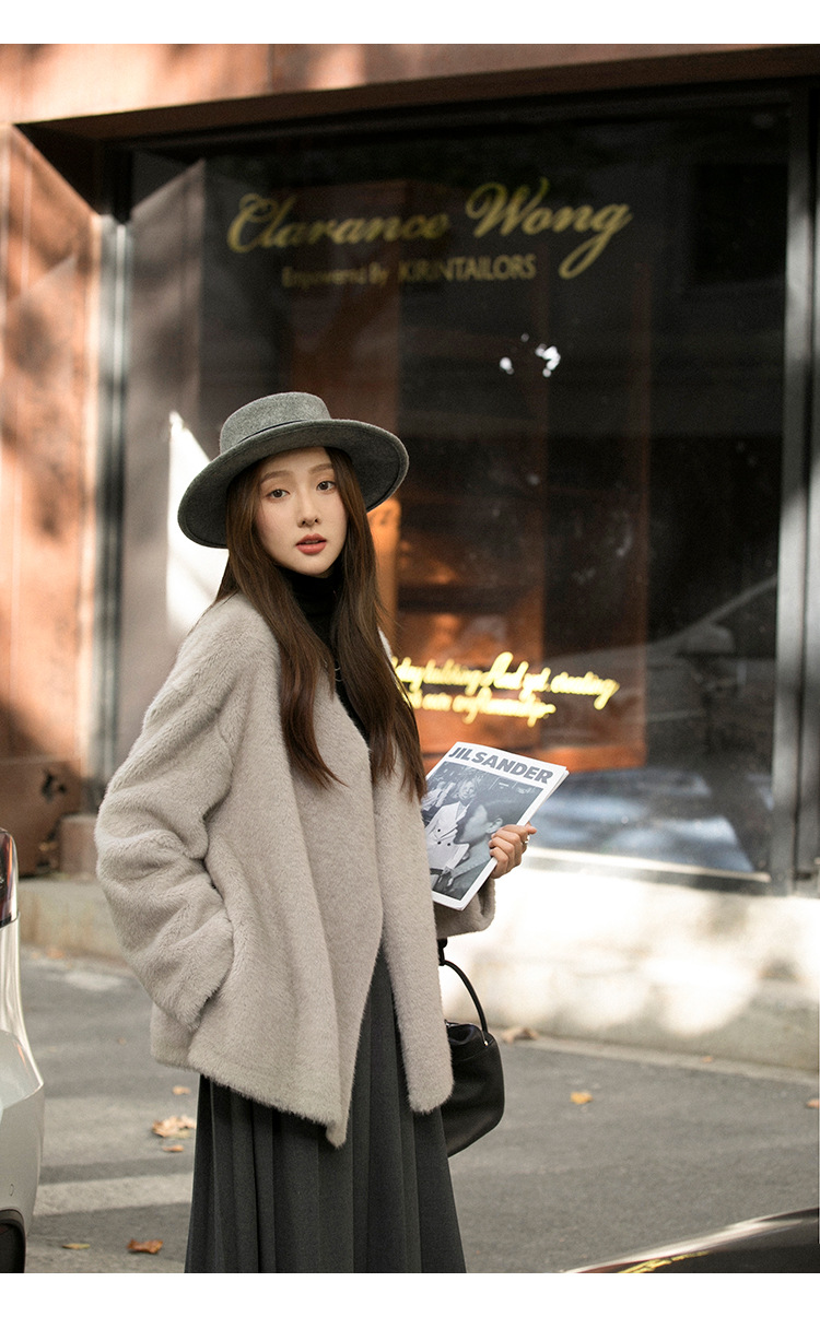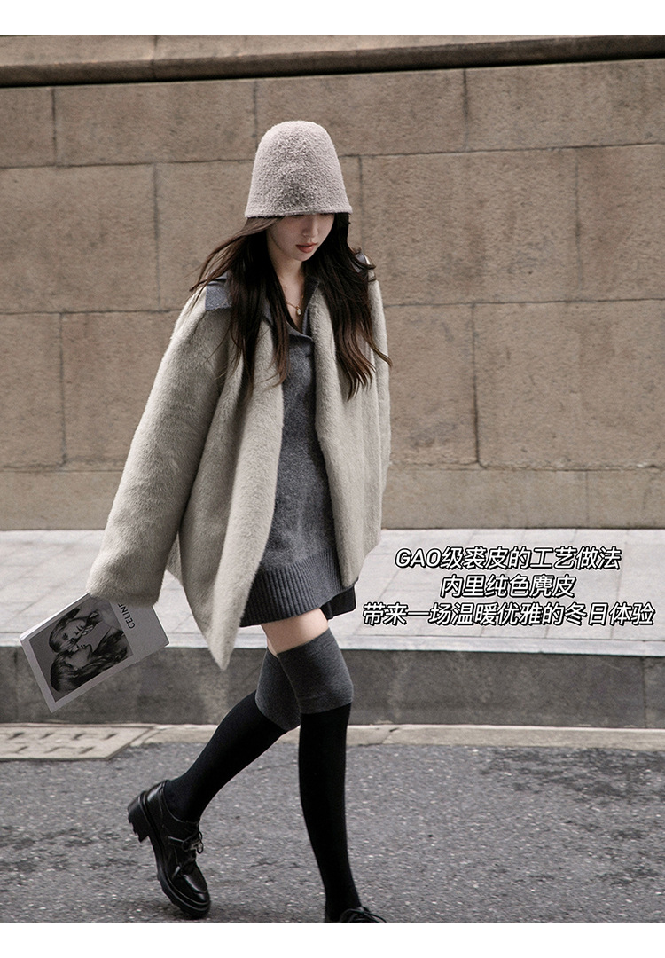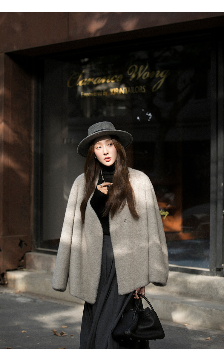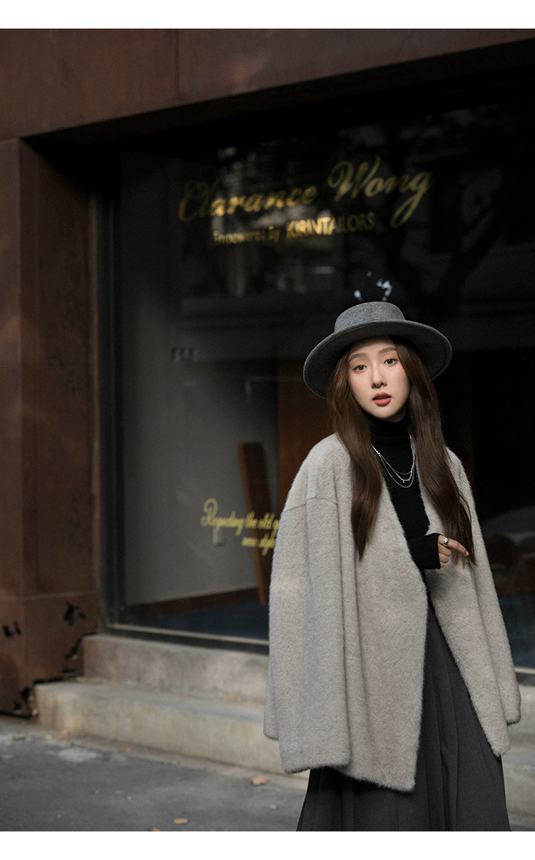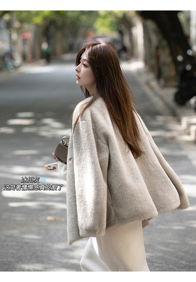 마오 마오 코트 탈출 딸 V 넥 짧은 모조 밍크 코트 여성의 겨울 환경 보호 모피 라이브스토어 가기