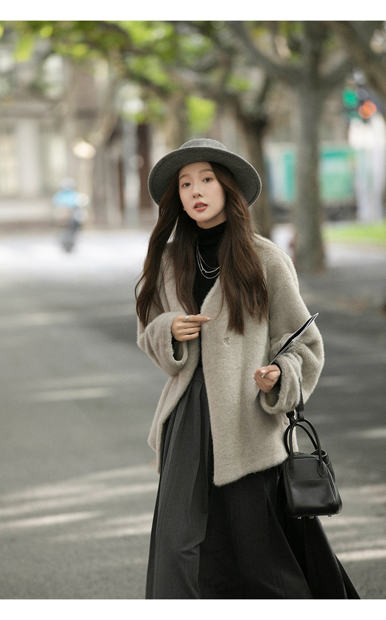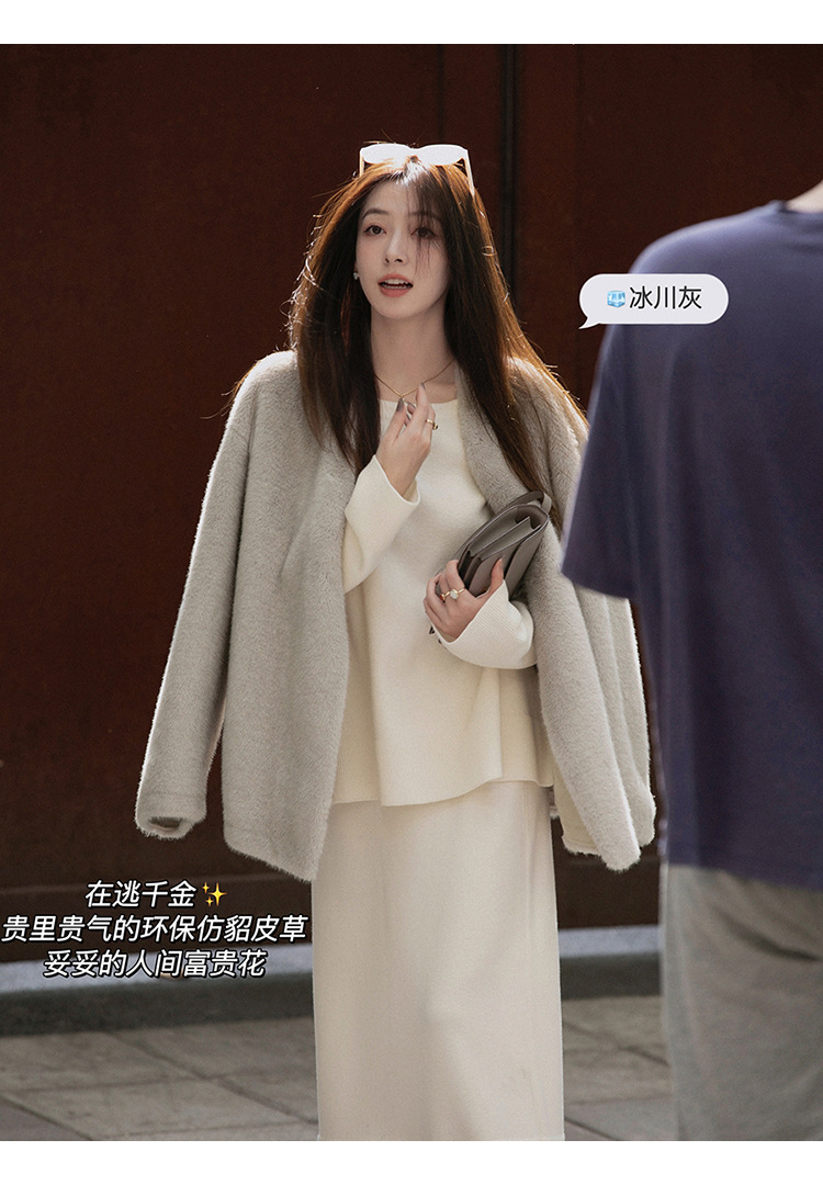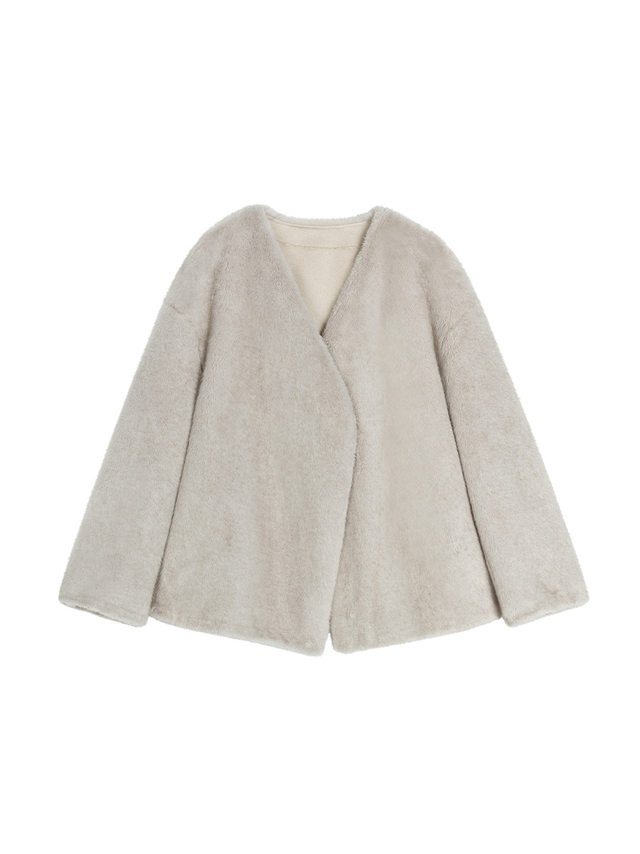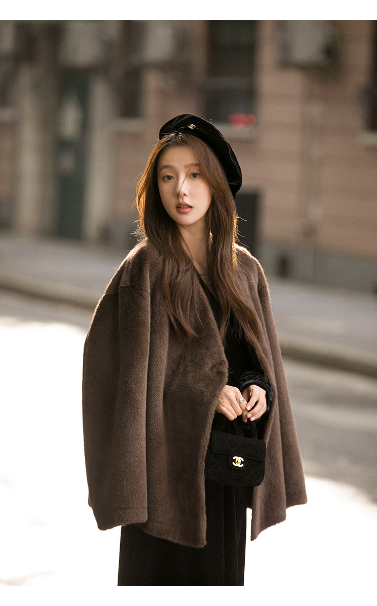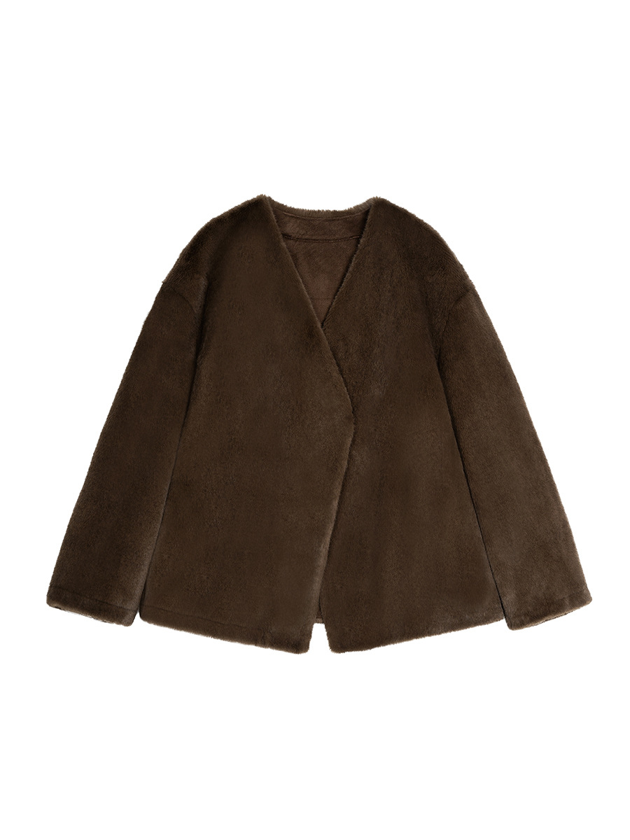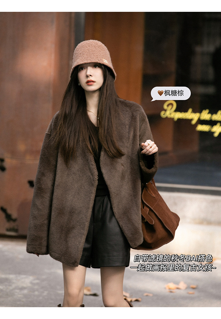 마오 마오 코트 탈출 딸 V 넥 짧은 모조 밍크 코트 여성의 겨울 환경 보호 모피 라이브스토어 가기
