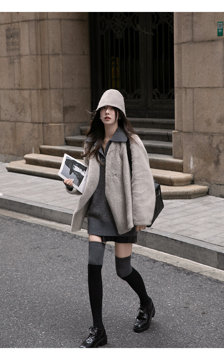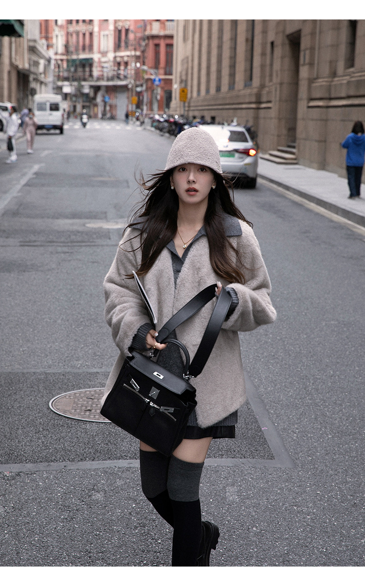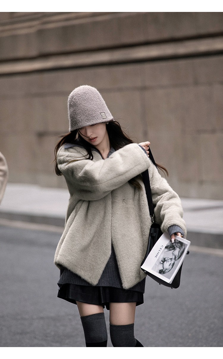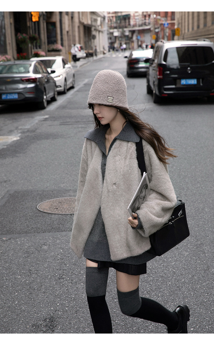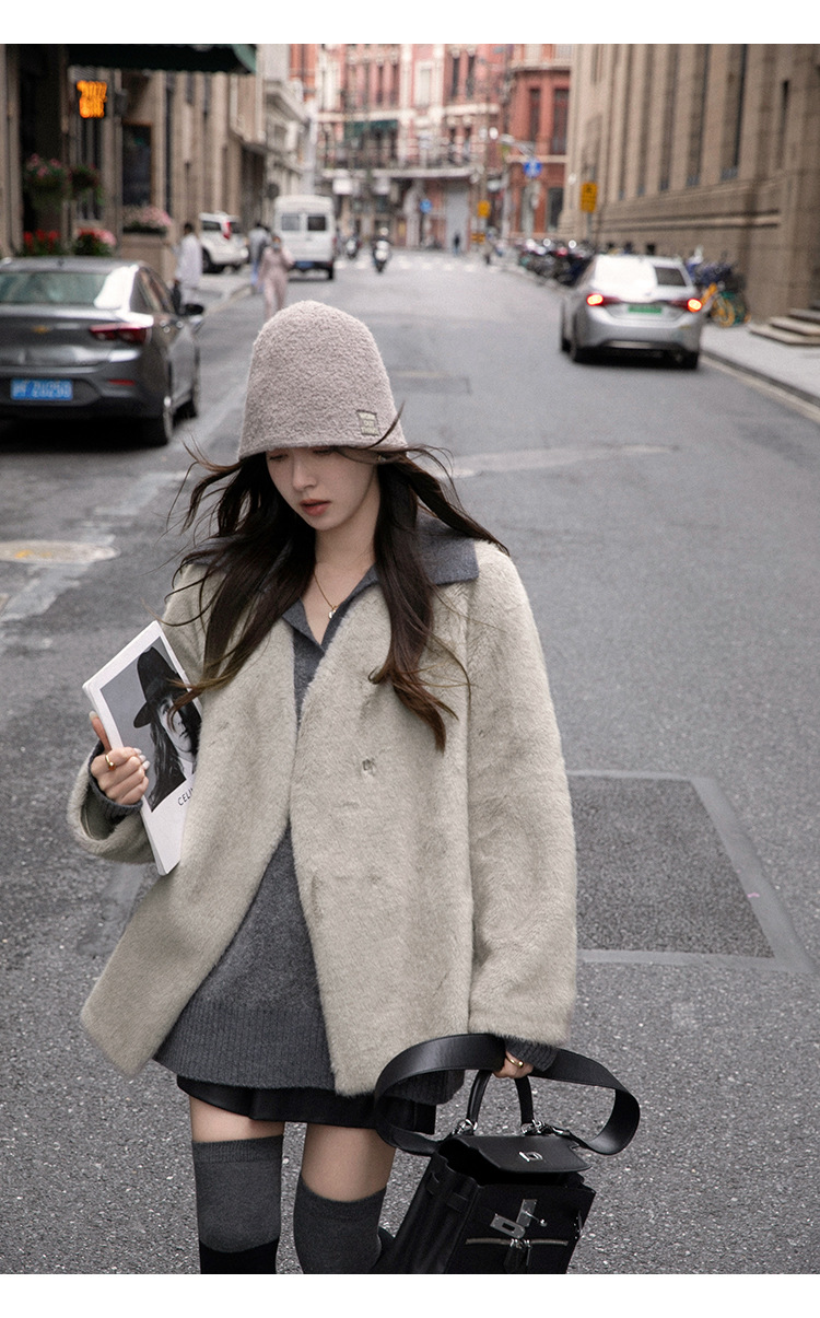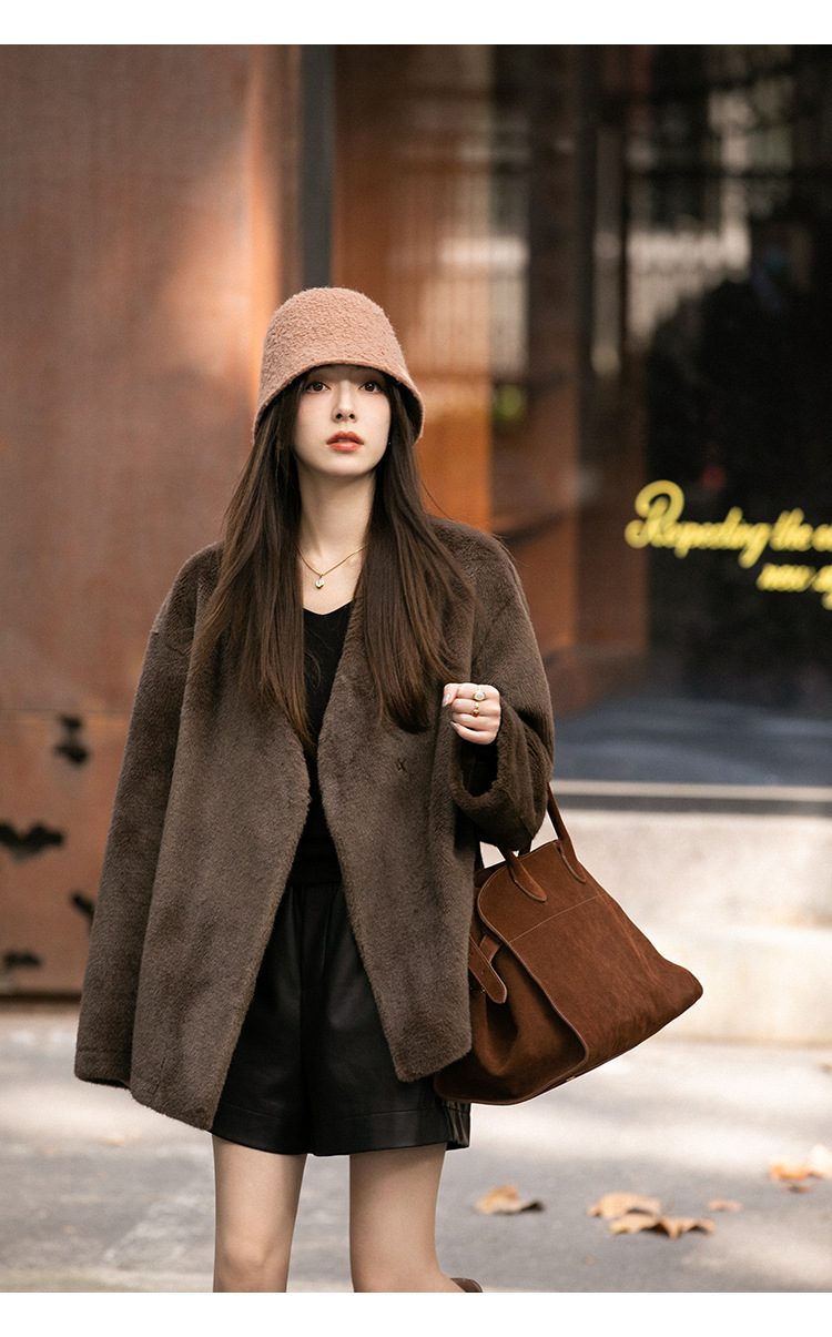 마오 마오 코트 탈출 딸 V 넥 짧은 모조 밍크 코트 여성의 겨울 환경 보호 모피 라이브스토어 가기
