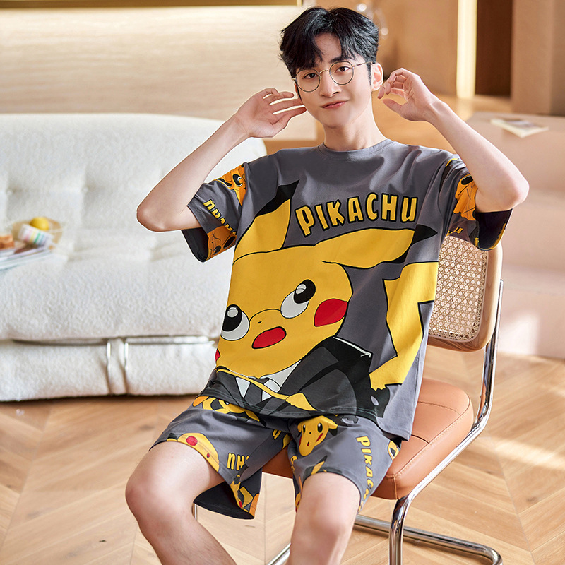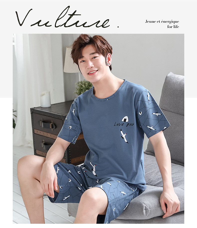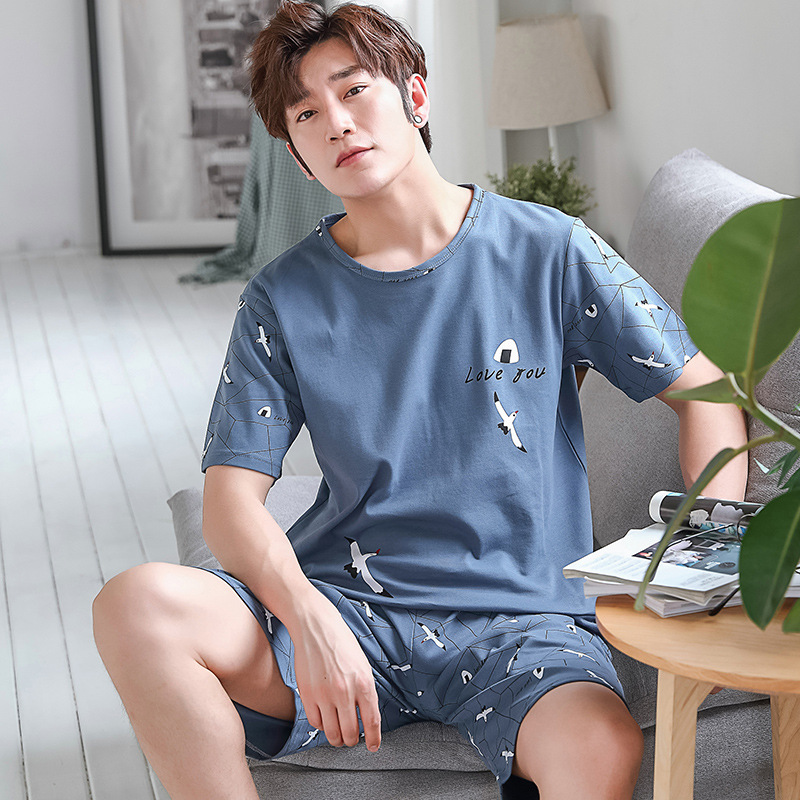 2023 여름 잠옷 남자의 십대 스포츠 반팔 느슨한 캐주얼 홈 플러스 사이즈 세트 남자의 겉옷스토어 가기