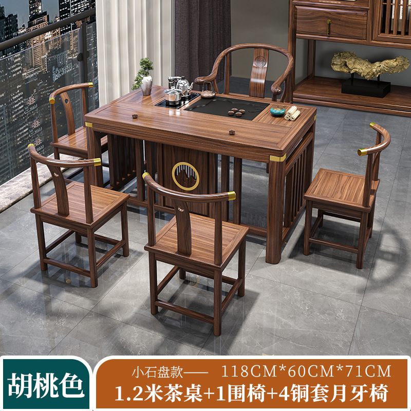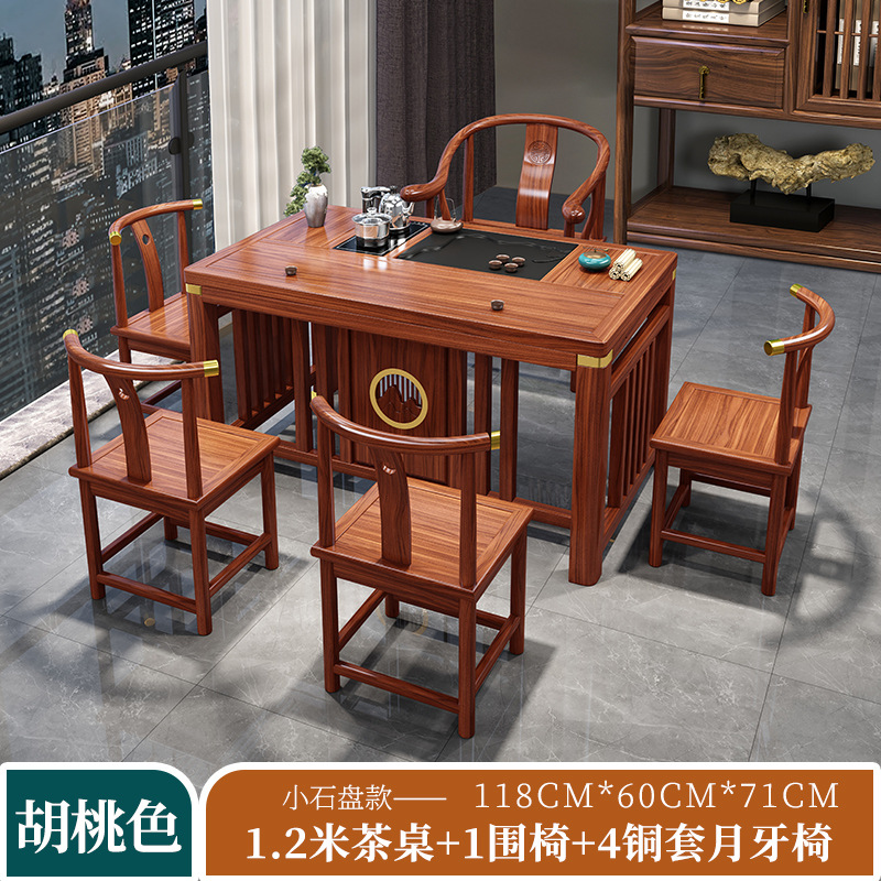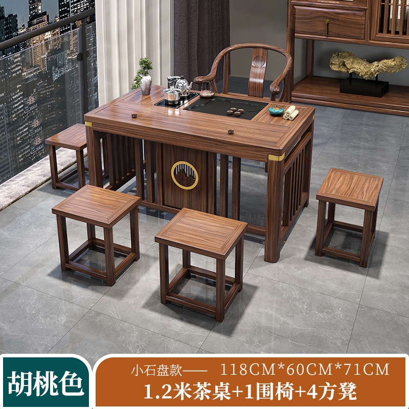 발코니 티 테이블과 의자 조합 새로운 중국 스타일 단단한 나무 간단한 티 테이블 세트 올인원 가정용 작은 아파트 쿵푸 티 테이블스토어 가기