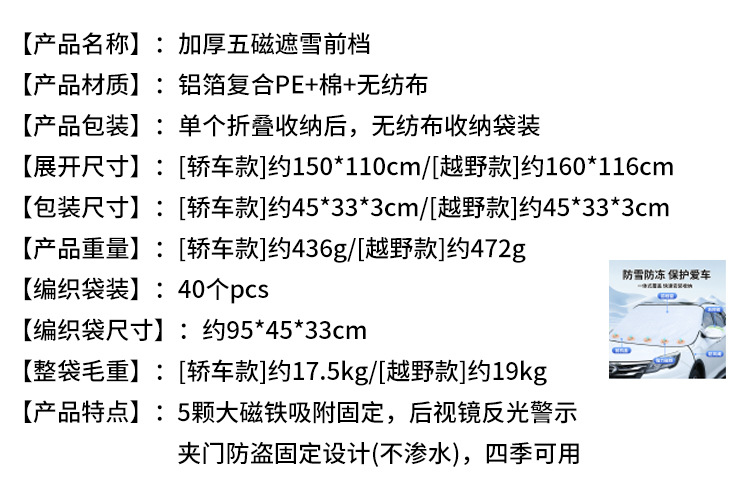 • 소형 5 마그네틱 선쉐이드 스노우 쉴드 [자동차 모델]