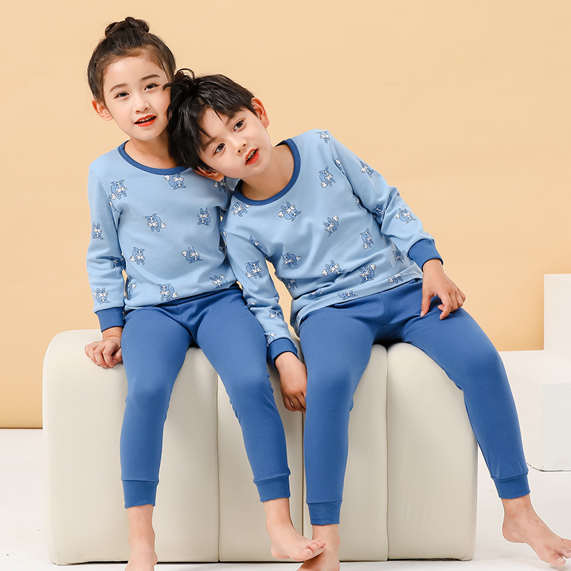 2023 가을과 겨울 어린이 라운드 넥 코튼 홈 옷 잠옷 소년과 소녀 만화 가을 옷 가을 바지 기본 속옷 세트스토어 가기