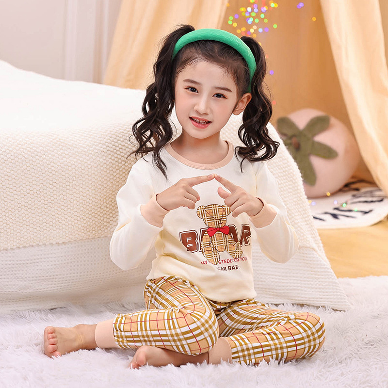 2023 가을과 겨울 어린이 라운드 넥 코튼 홈 옷 잠옷 소년과 소녀 만화 가을 옷 가을 바지 기본 속옷 세트