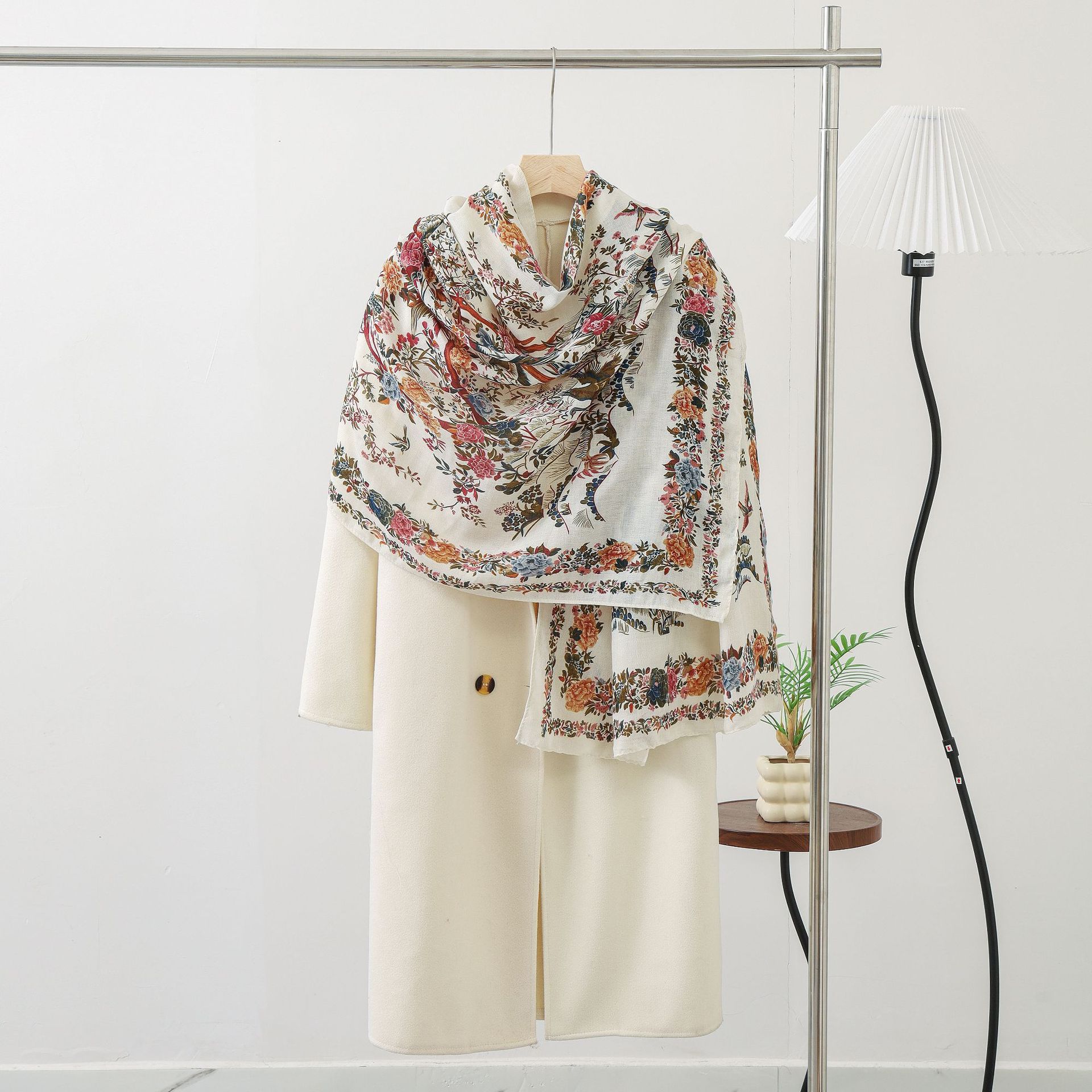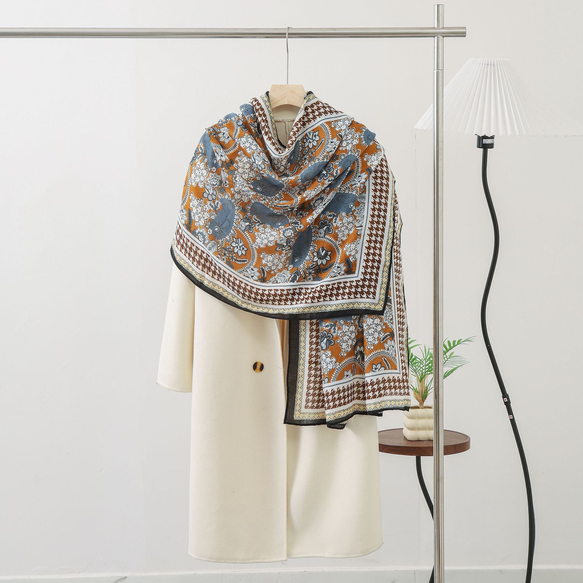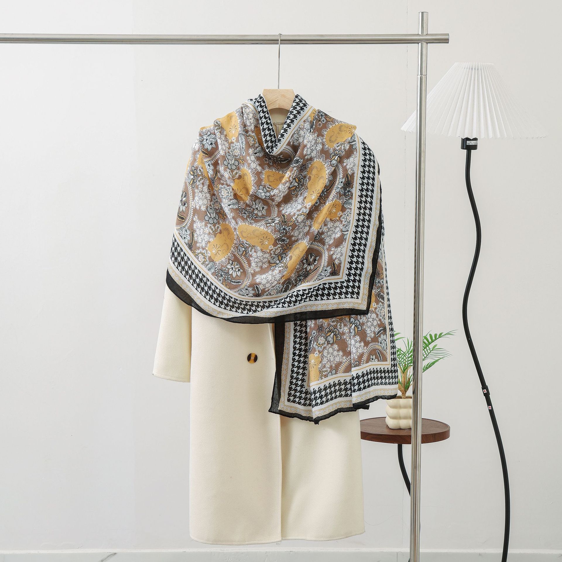 가을과 겨울의면과 린넨 프린트 스카프 여성의 부드러운 피부 친화적 인 스카프 스카프 외부 이중 목적 목도리 세대의 라이브 방송스토어 가기