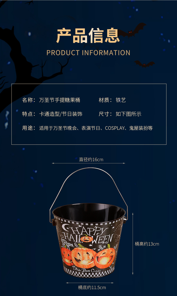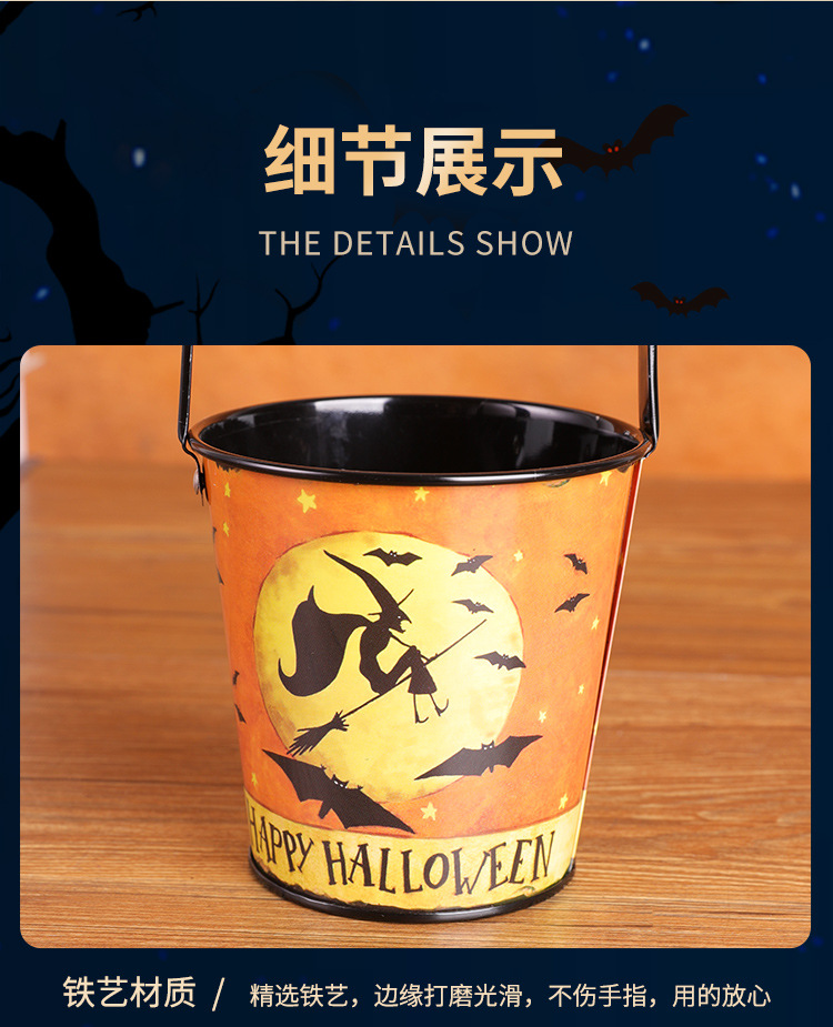 단철 호박 저장 양동이 할로윈 사탕 마무리 철 양동이 어린이 휴대용 철 튀김 치킨 팝콘 미니 양동이