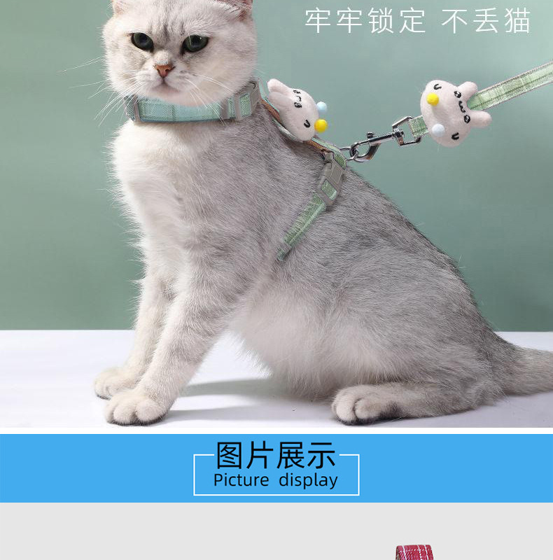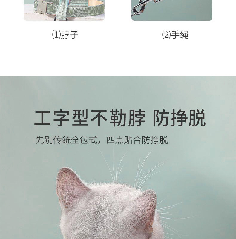 고양이 견인 로프 I 형 안티 브레이크 프리 그라디언트 조정 가능한 워킹 고양이 로프 세트 개 체인 I-백 견인 로프