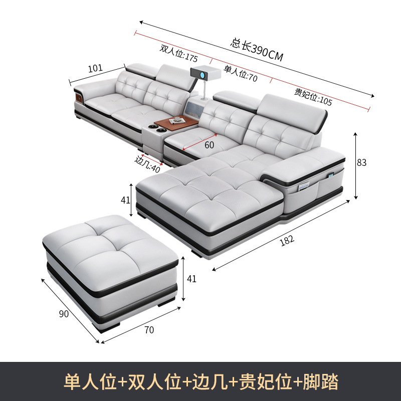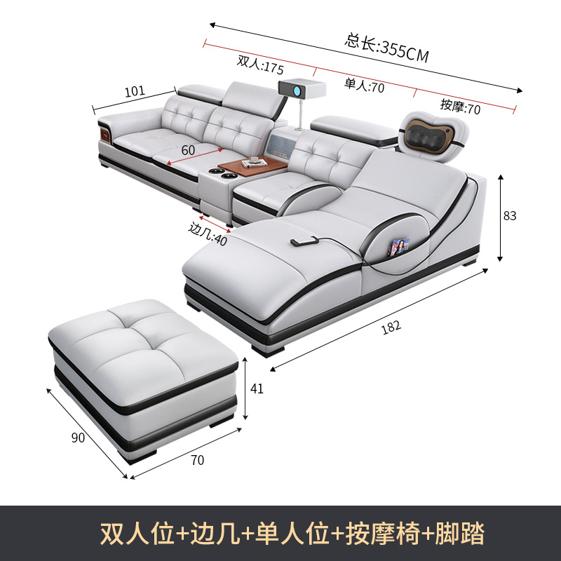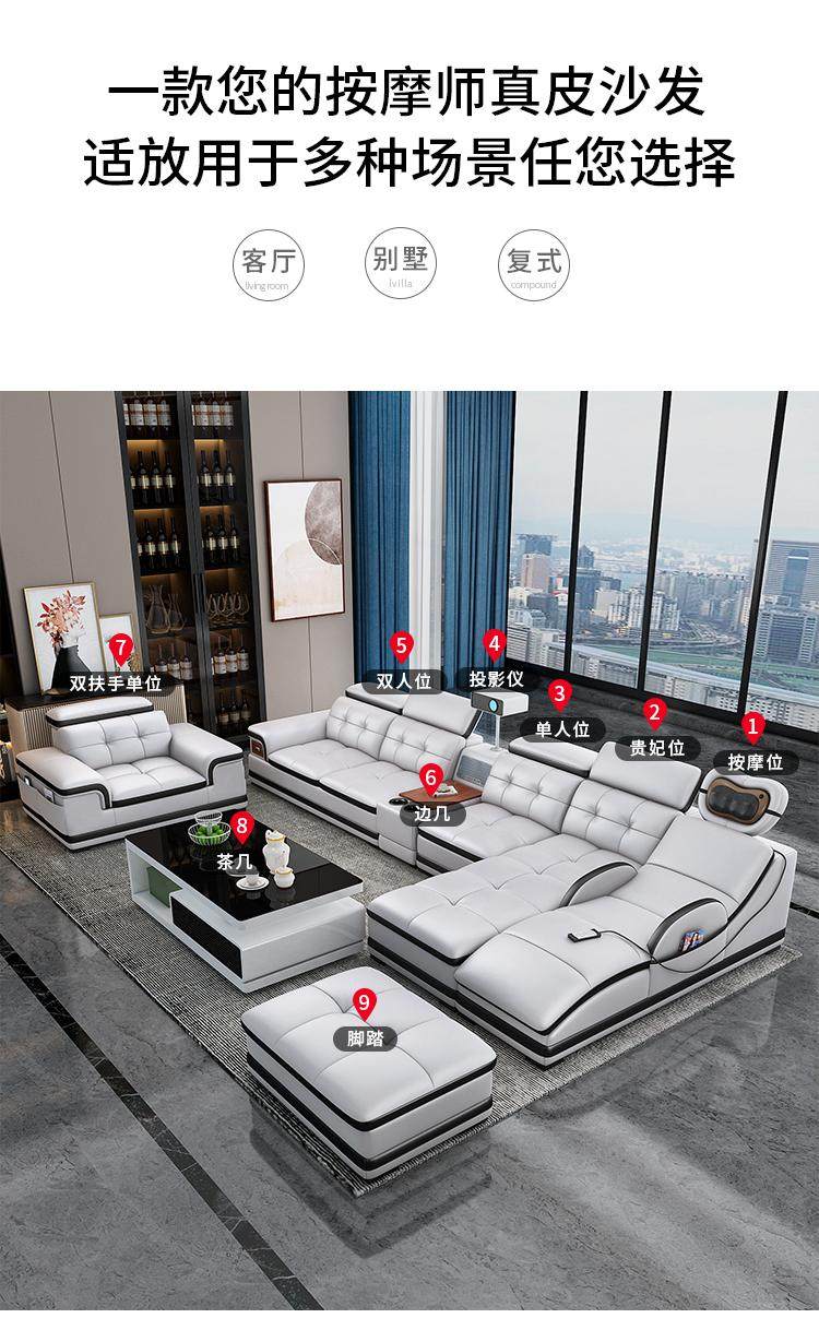 이탈리아 홈 시어터 소파 코너 스마트 마사지 거실 현대 간단한 첫 번째 레이어 소가죽 크고 작은 아파트스토어 가기