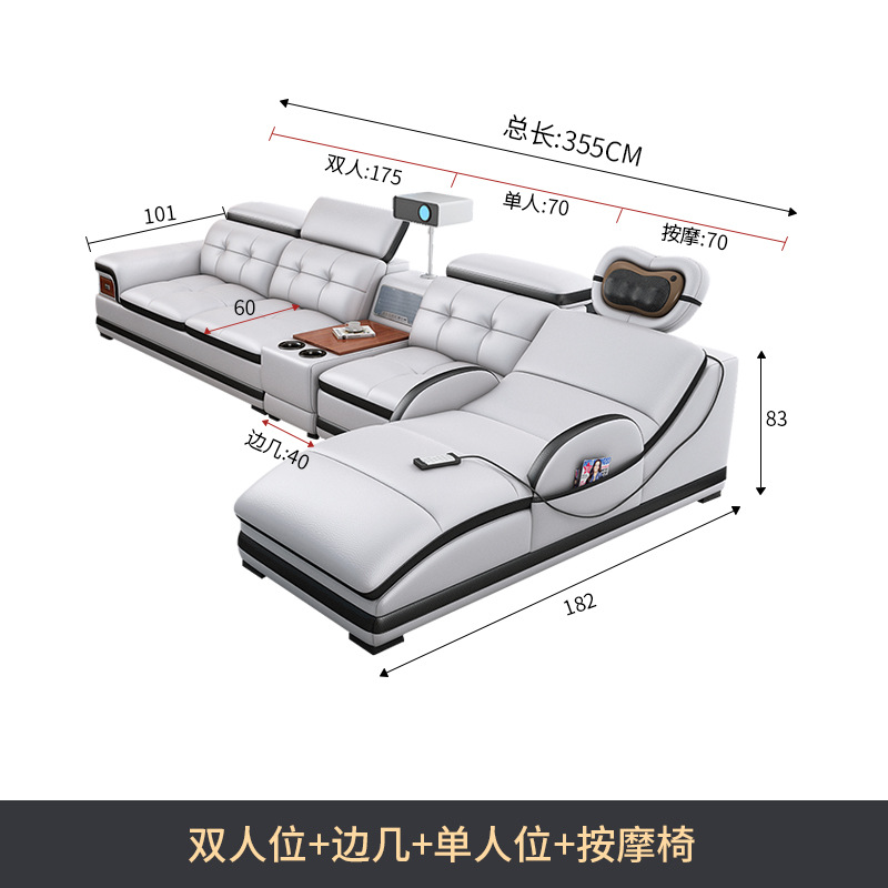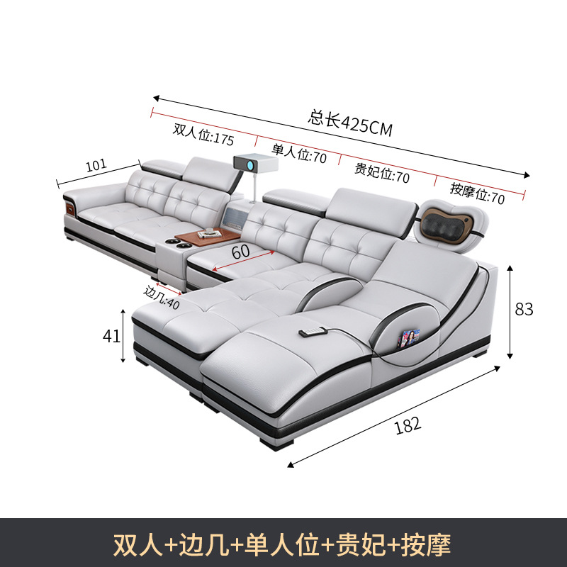 이탈리아 홈 시어터 소파 코너 스마트 마사지 거실 현대 간단한 첫 번째 레이어 소가죽 크고 작은 아파트