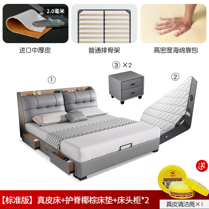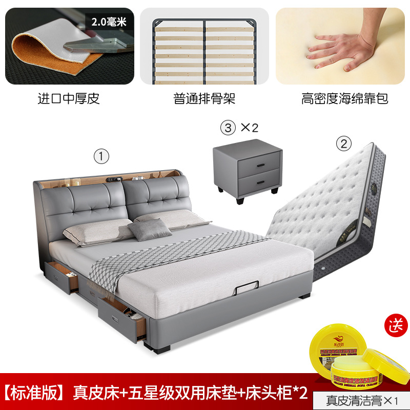 • [스탠다드 에디션] 가죽 침대 + 5 성 이중 사용 매트리스 (보통) + 침대 옆 탁자 * 2