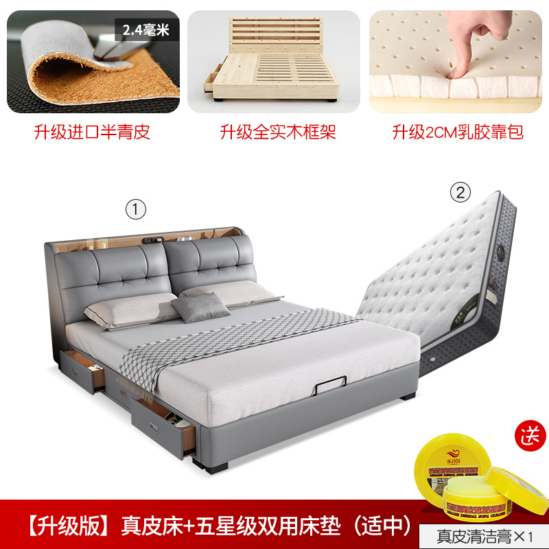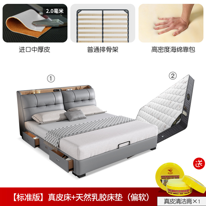 • [업그레이드 버전] 가죽 침대 + 천연 라텍스 매트리스 (소프트)