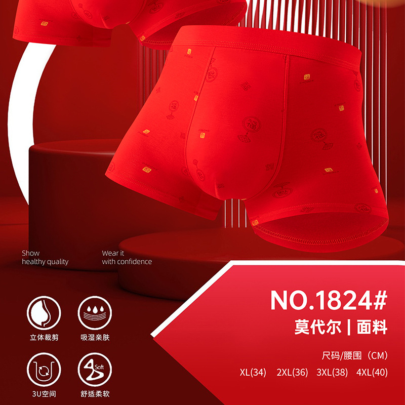 Sir Hebang 717 남성 미드 웨이스트 단색 만화 RC 면 피부 친화적 인 대비 색상 바지 젊은 남성 속옷 면 반바지스토어 가기