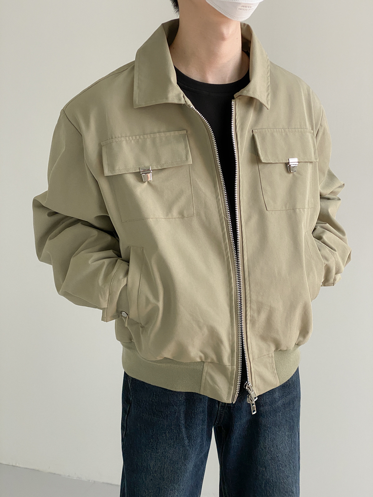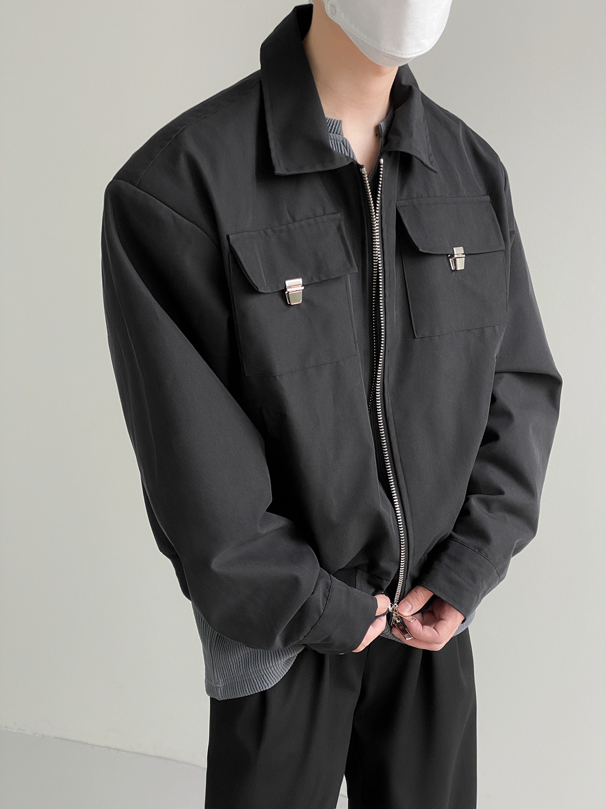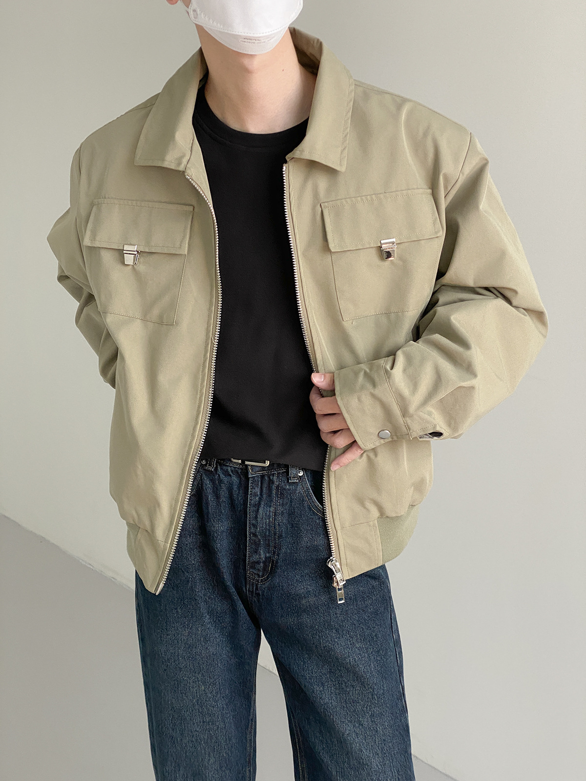캐주얼 오버롤 재킷 남자의 봄과 가을 2023 새로운 패션 브랜드 느슨한 야구 세트 라펠 지퍼 짧은 재킷스토어 가기