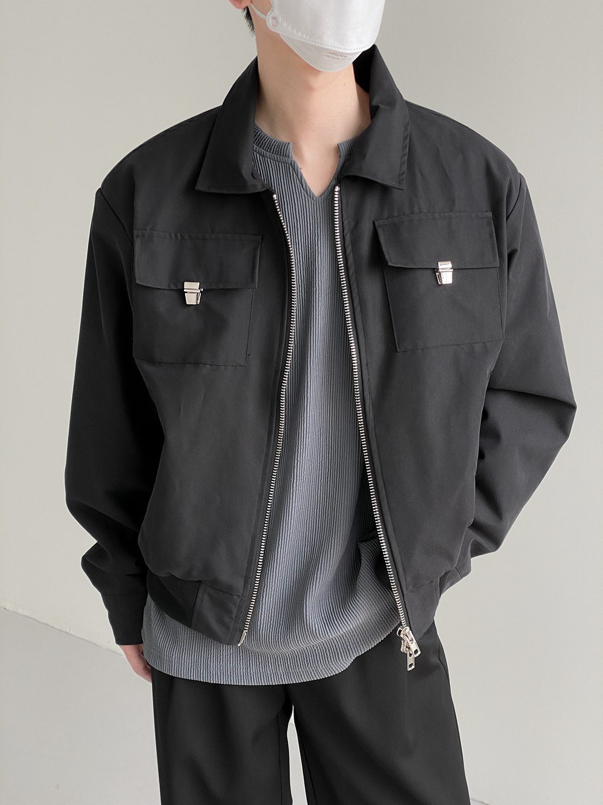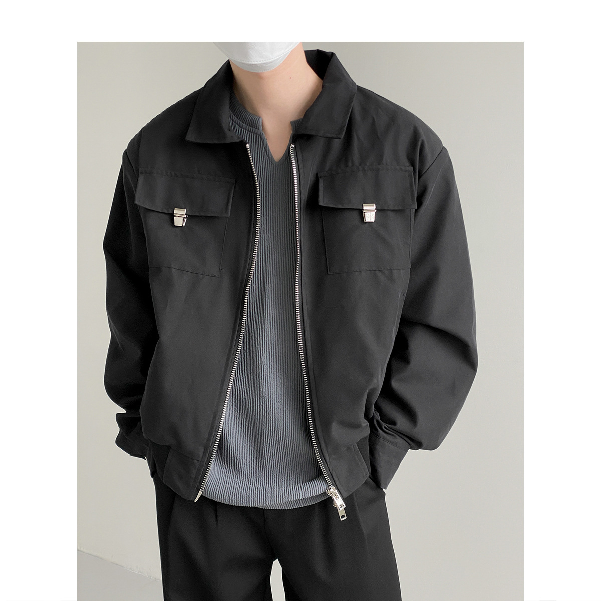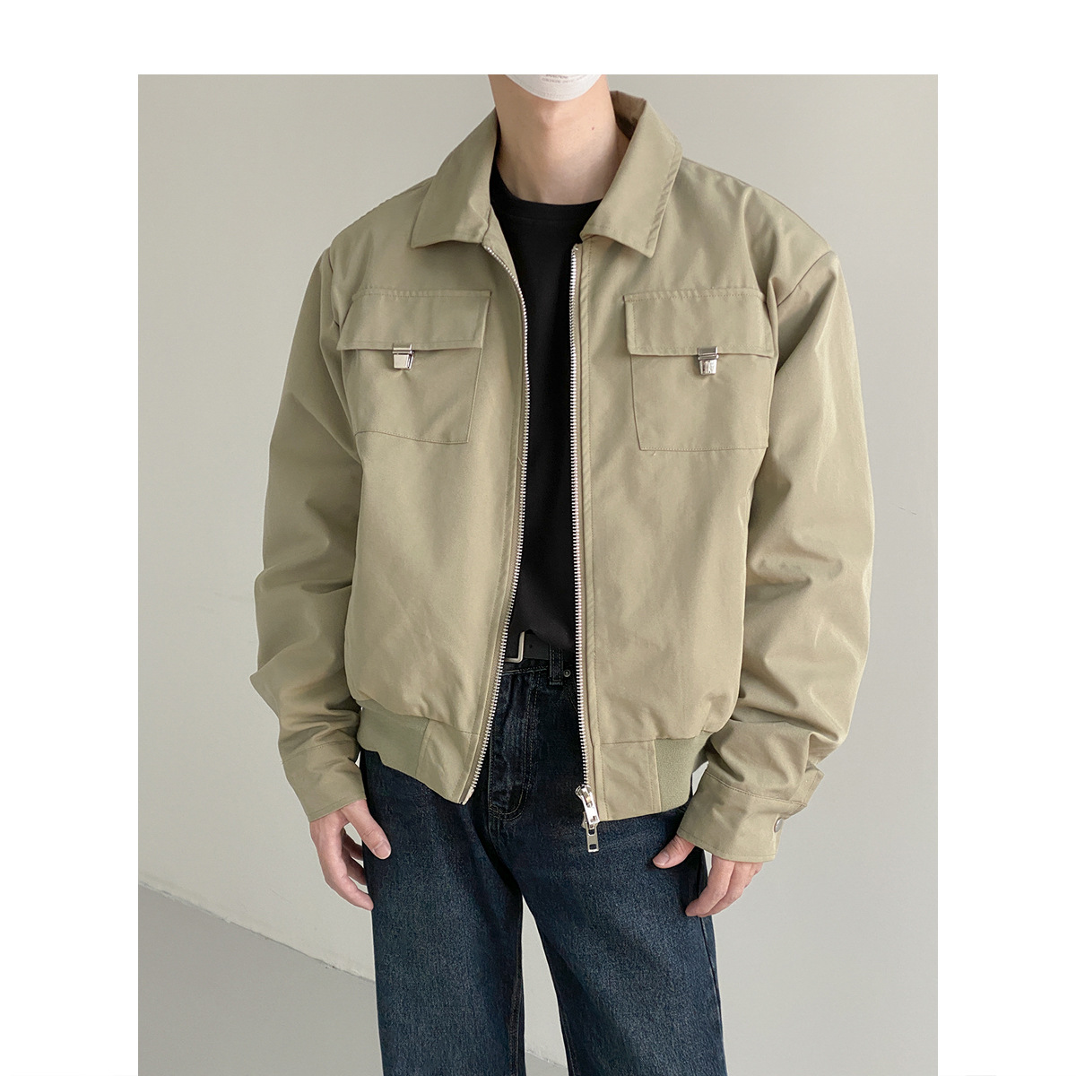 캐주얼 오버롤 재킷 남자의 봄과 가을 2023 새로운 패션 브랜드 느슨한 야구 세트 라펠 지퍼 짧은 재킷