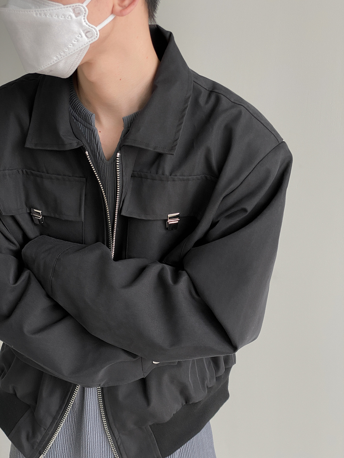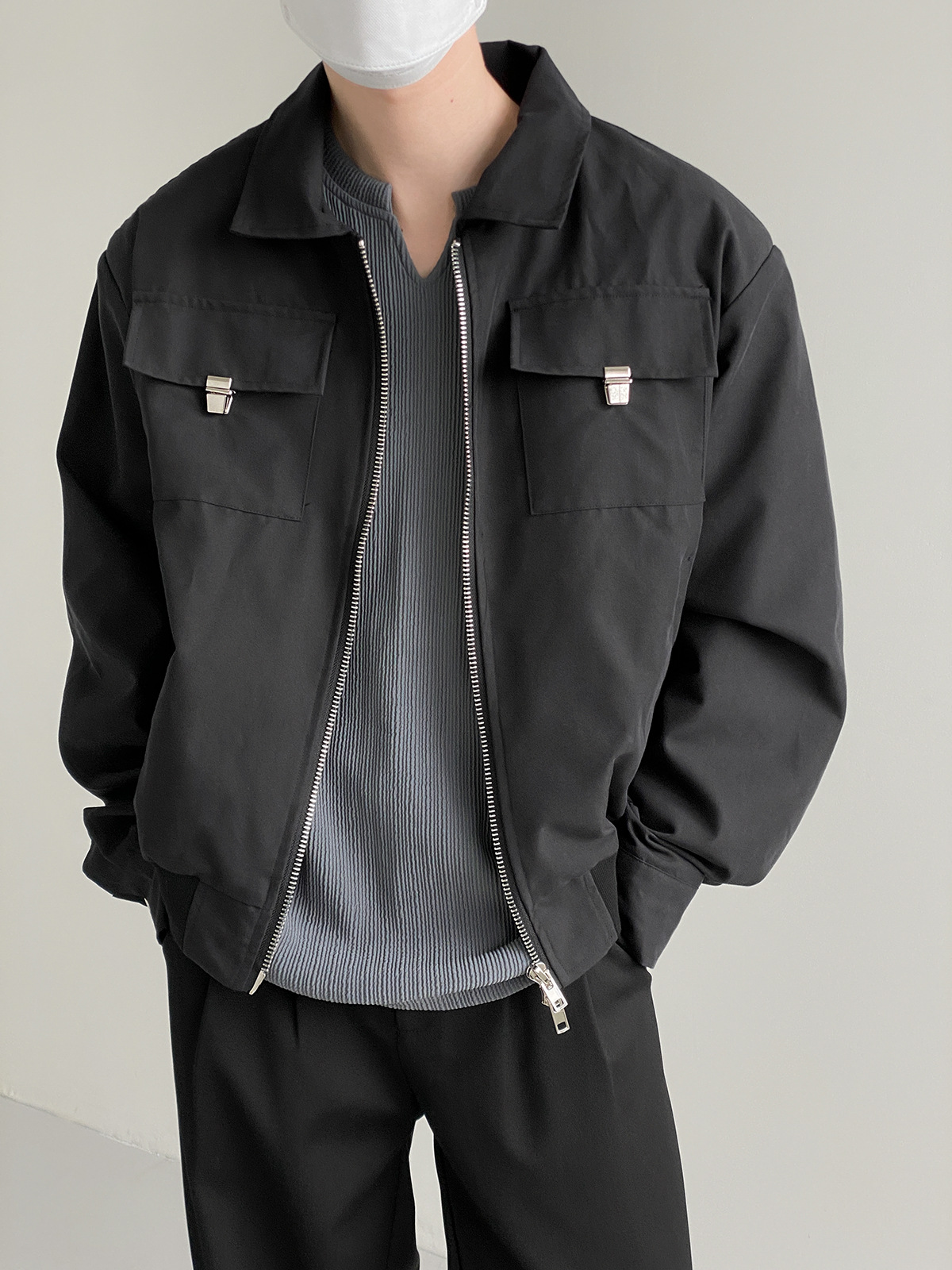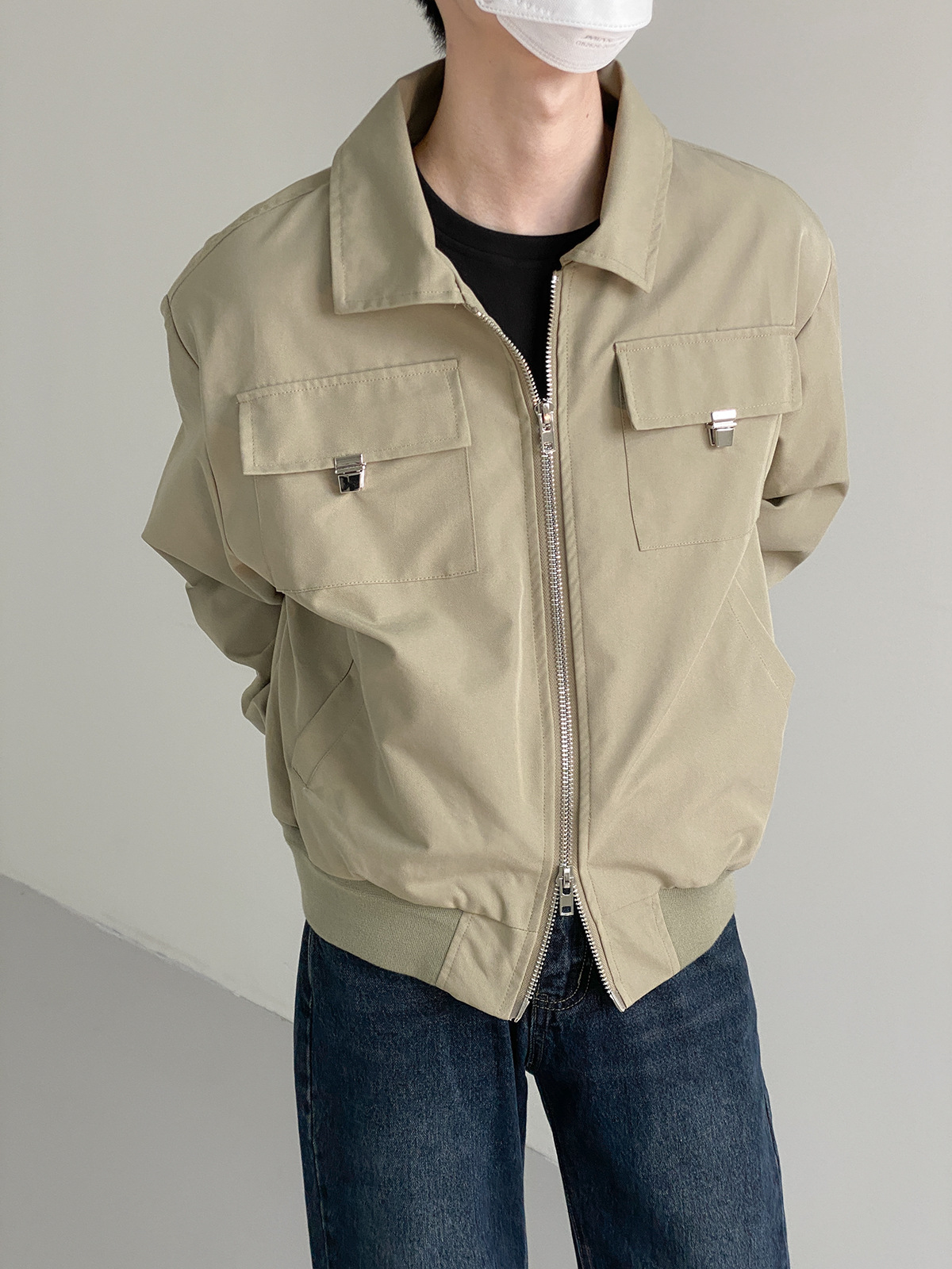 캐주얼 오버롤 재킷 남자의 봄과 가을 2023 새로운 패션 브랜드 느슨한 야구 세트 라펠 지퍼 짧은 재킷