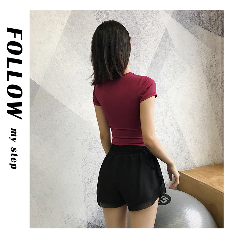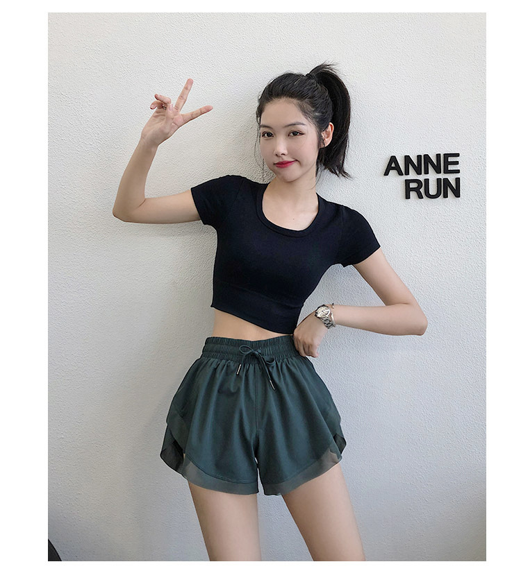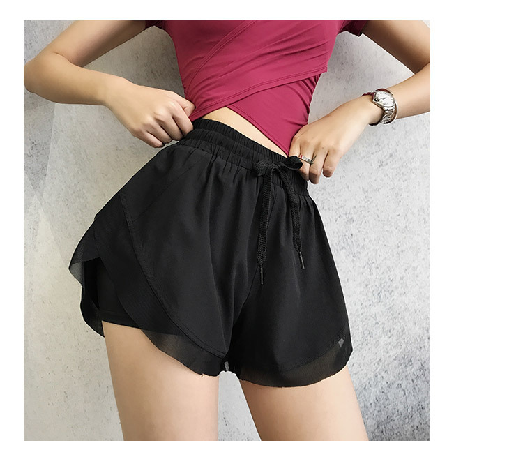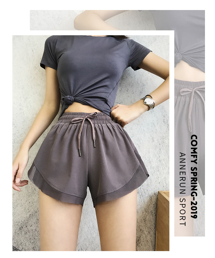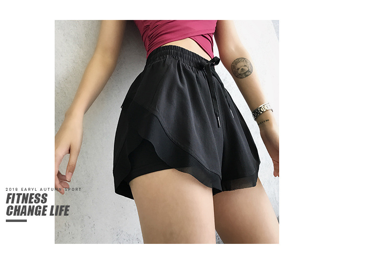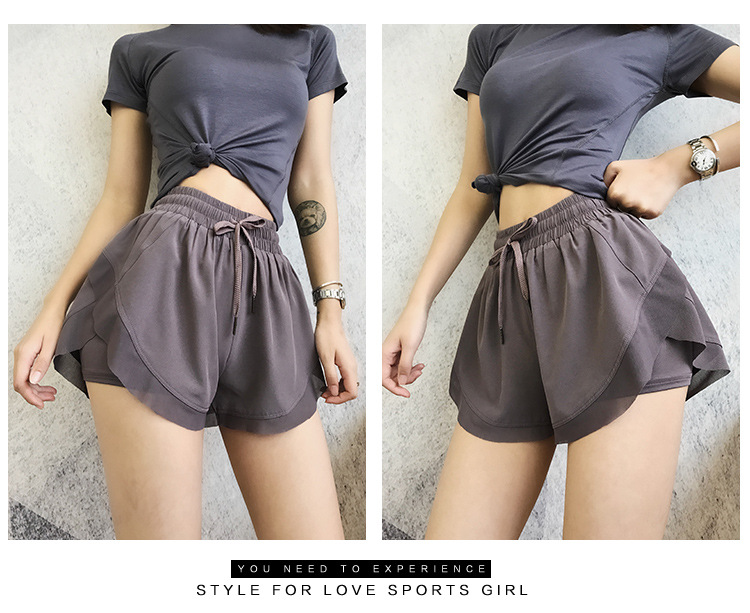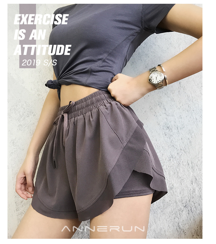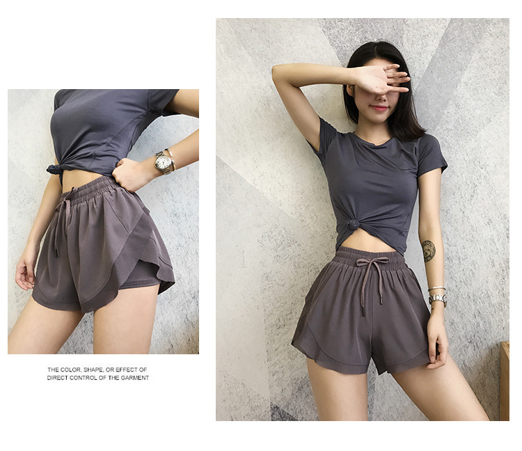여름 스포츠 반바지 여성용 걷기 방지 가짜 2 피스 속건 통기성 겉옷 러닝 트레이닝 피트니스 바지 요가 반바지