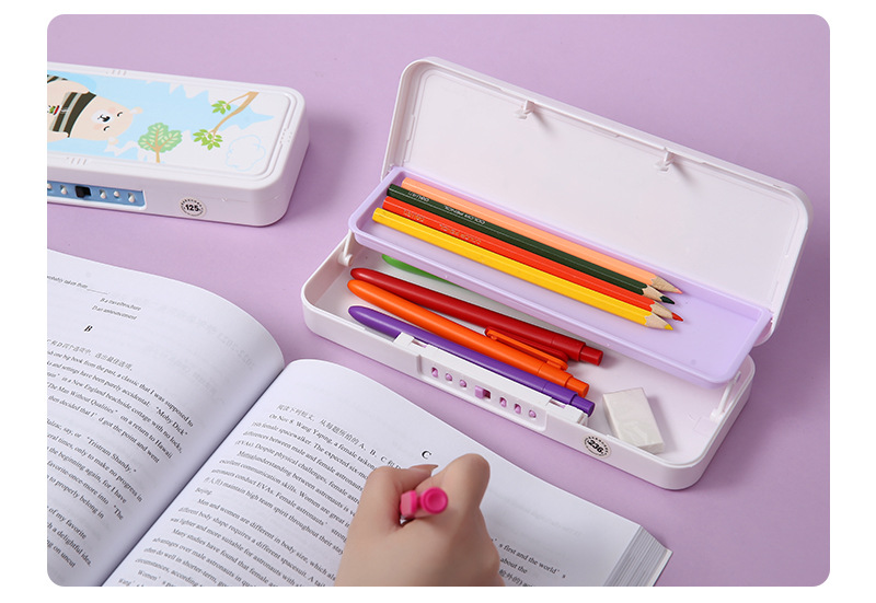 크리 에이 티브 만화 암호 편지지 상자 어린이 플라스틱 더블 레이어 펜 상자 유치원 다기능 암호 잠금 편지지 상자