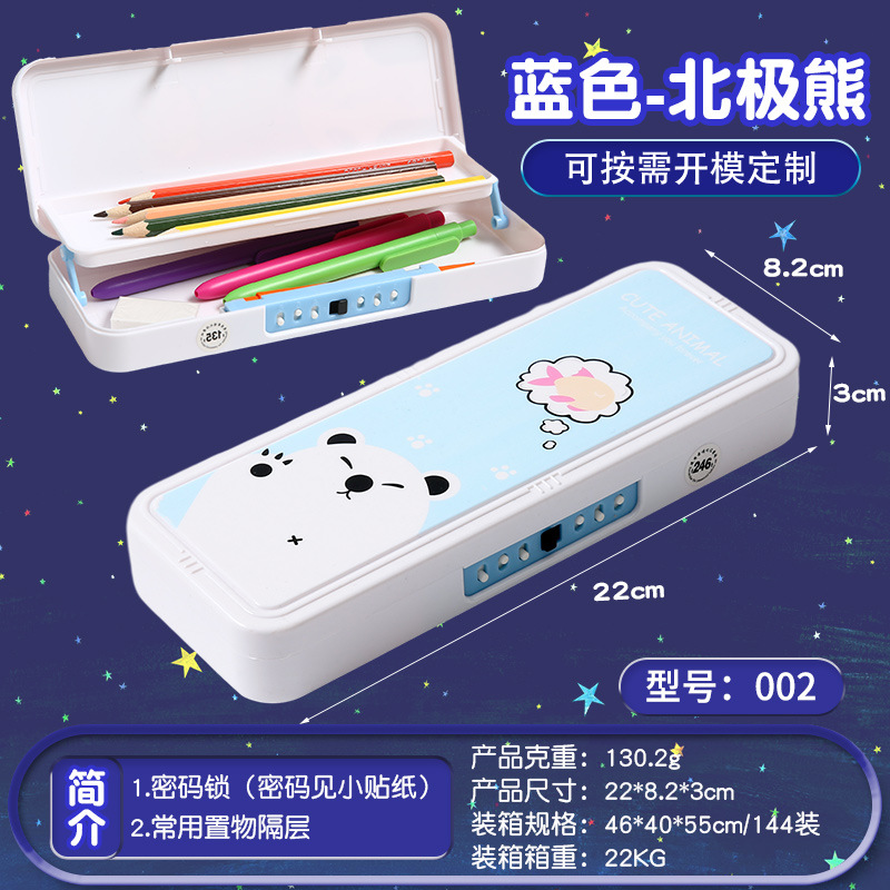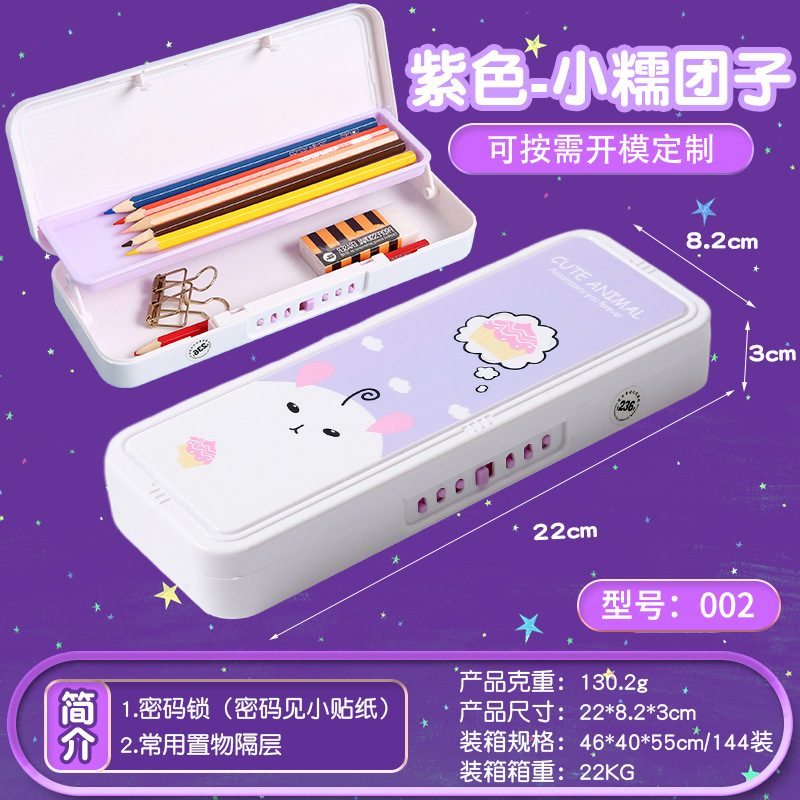 크리 에이 티브 만화 암호 편지지 상자 어린이 플라스틱 더블 레이어 펜 상자 유치원 다기능 암호 잠금 편지지 상자스토어 가기