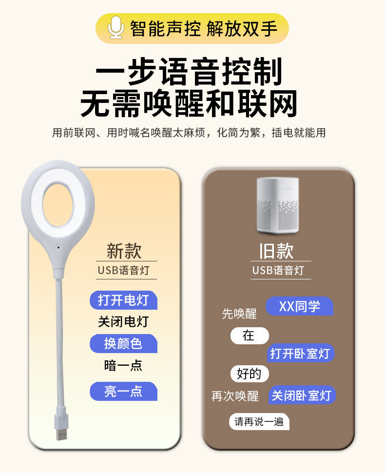 USB 음성 야간 조명, 조광 및 색상 변경, 에너지 절약, 가정 거실, 침실, 침대 옆 음성 지능형 소형 테이블 램프 도매스토어 가기
