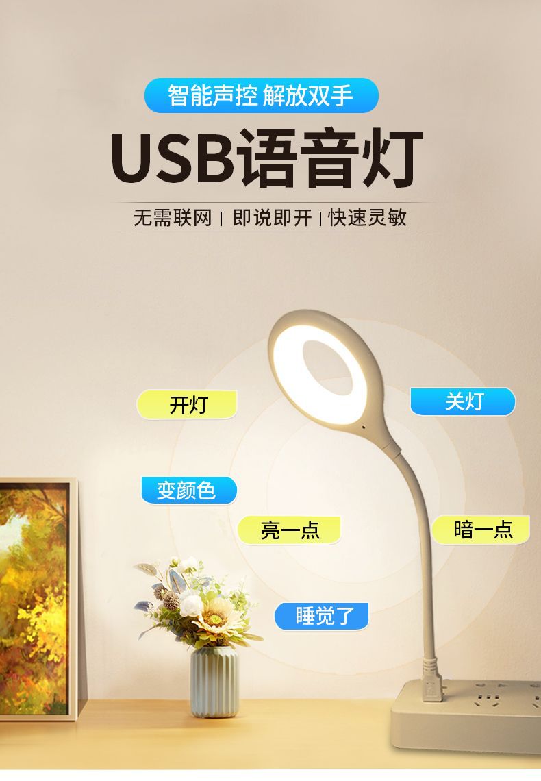 USB 음성 야간 조명, 조광 및 색상 변경, 에너지 절약, 가정 거실, 침실, 침대 옆 음성 지능형 소형 테이블 램프 도매