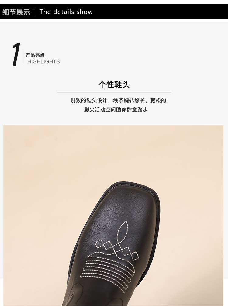 2025년 여성용 무릎 위까지 오는 롱부츠, 레트로 자수 라운드 토 미들힐 청부츠스토어 가기