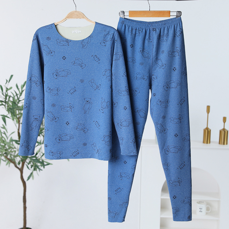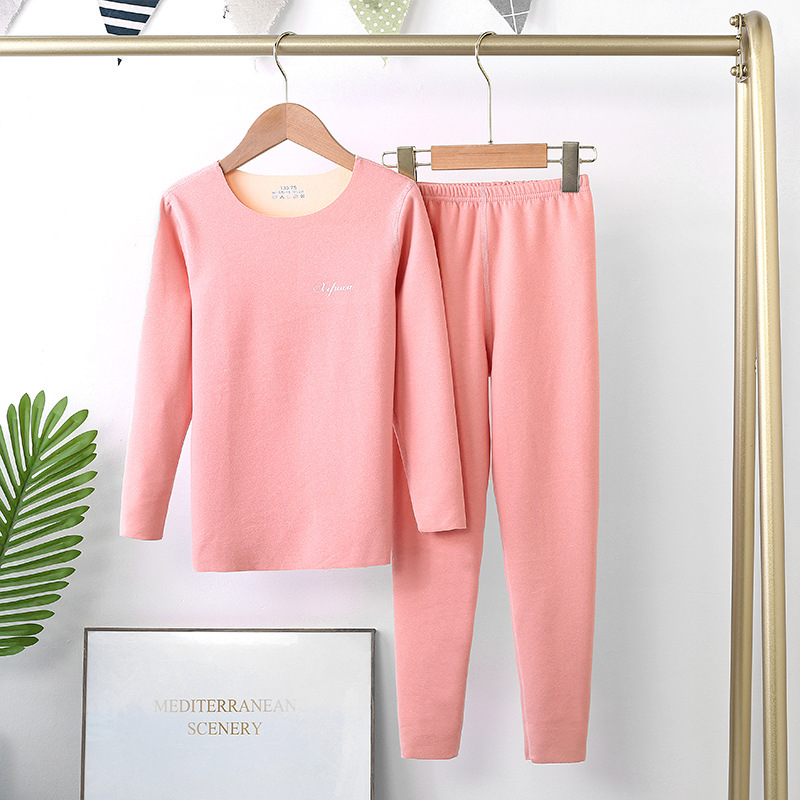도매 가을과 겨울 어린이 열 속옷 세트 둥근 목 긴 소매 샌딩 큰 소년과 소녀 소년 가을 바지스토어 가기