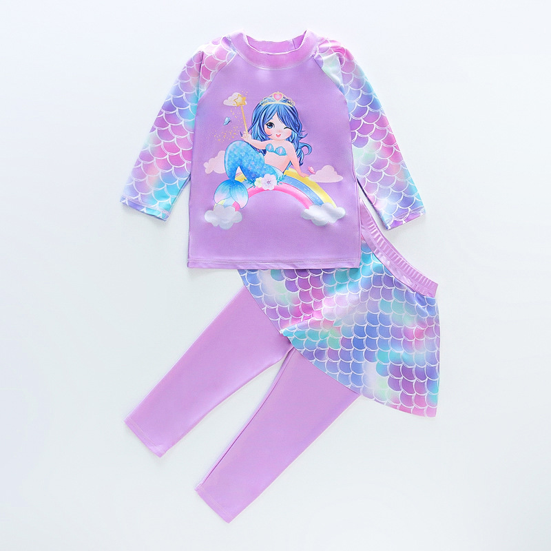 어린이 수영복 긴팔 여아 어린이 스플릿 수영복 자외선 차단제 속건 만화 인어 여아 스파 수영복스토어 가기