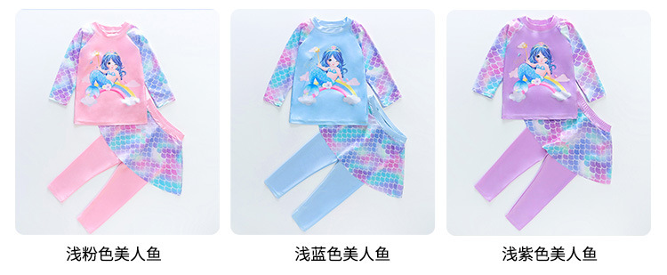 어린이 수영복 긴팔 여아 어린이 스플릿 수영복 자외선 차단제 속건 만화 인어 여아 스파 수영복