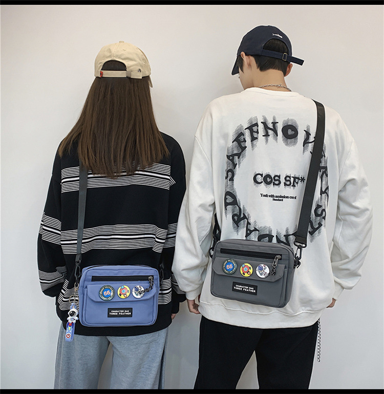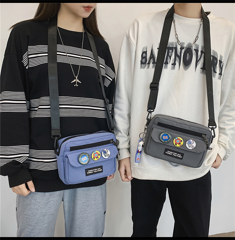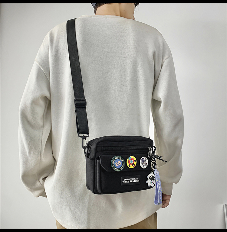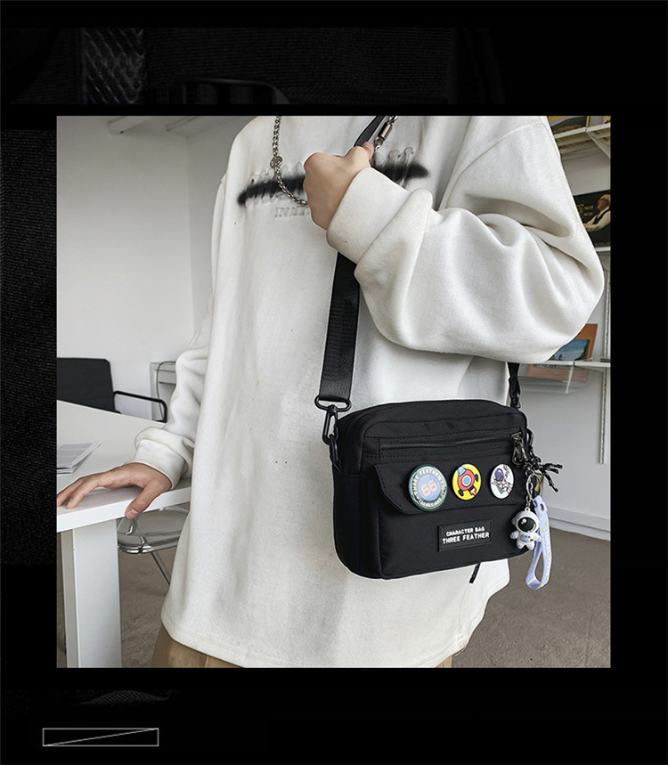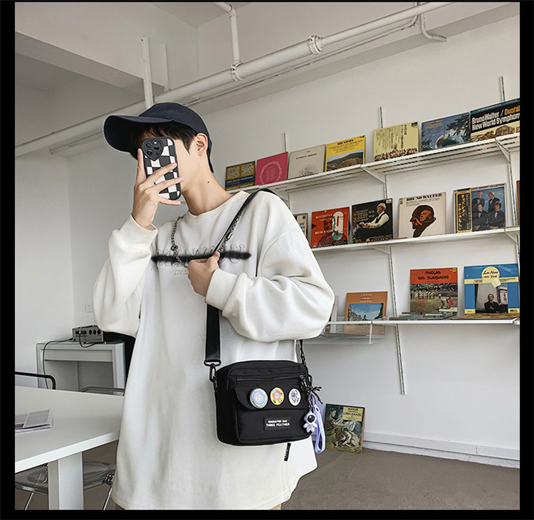 남자의 작은 가방 일본 스타일 크로스 바디 가방 소년 유행 브랜드 작은 사첼 휴대 전화 가방 캐주얼 어깨 가방 작은 배낭