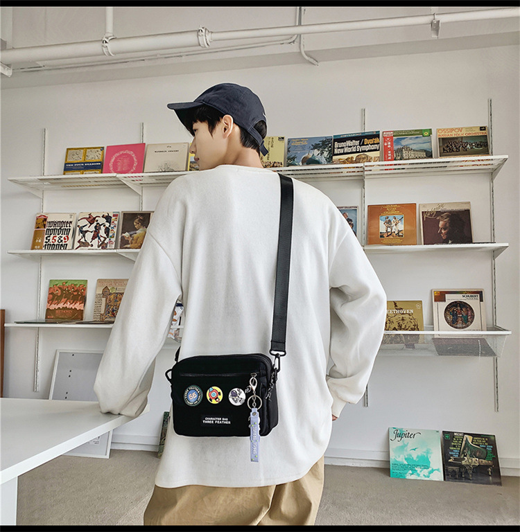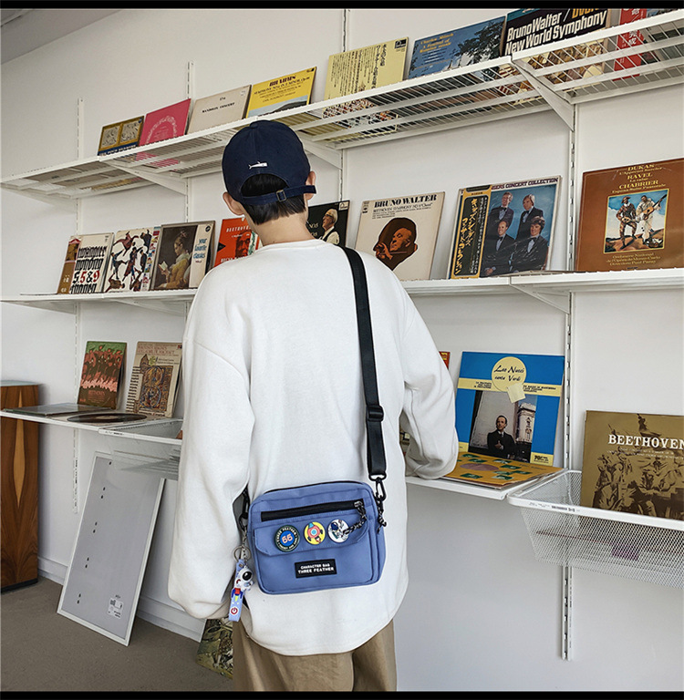 남자의 작은 가방 일본 스타일 크로스 바디 가방 소년 유행 브랜드 작은 사첼 휴대 전화 가방 캐주얼 어깨 가방 작은 배낭스토어 가기
