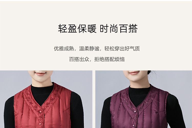 다운 조끼 여성 착용 오리 다운 조끼 어머니 슬림 하의 조끼 중년 여성 양복 조끼 공장 습관