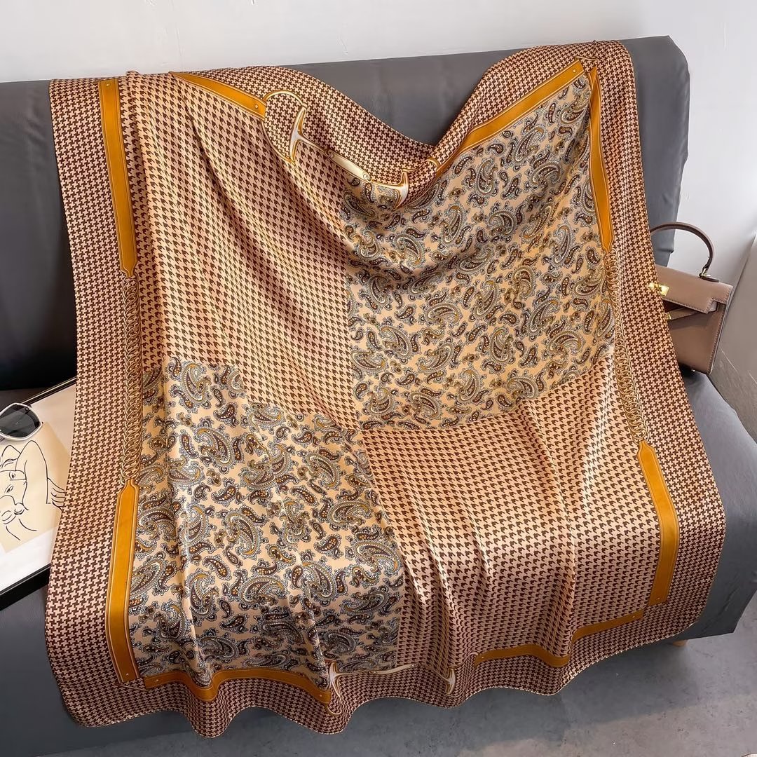 레트로 110cm 여름 자외선 차단제 대형 사각 스카프 리 브로케이드 새틴 대외 무역 스카프 Houndstooth 터번 비치 타올 숄