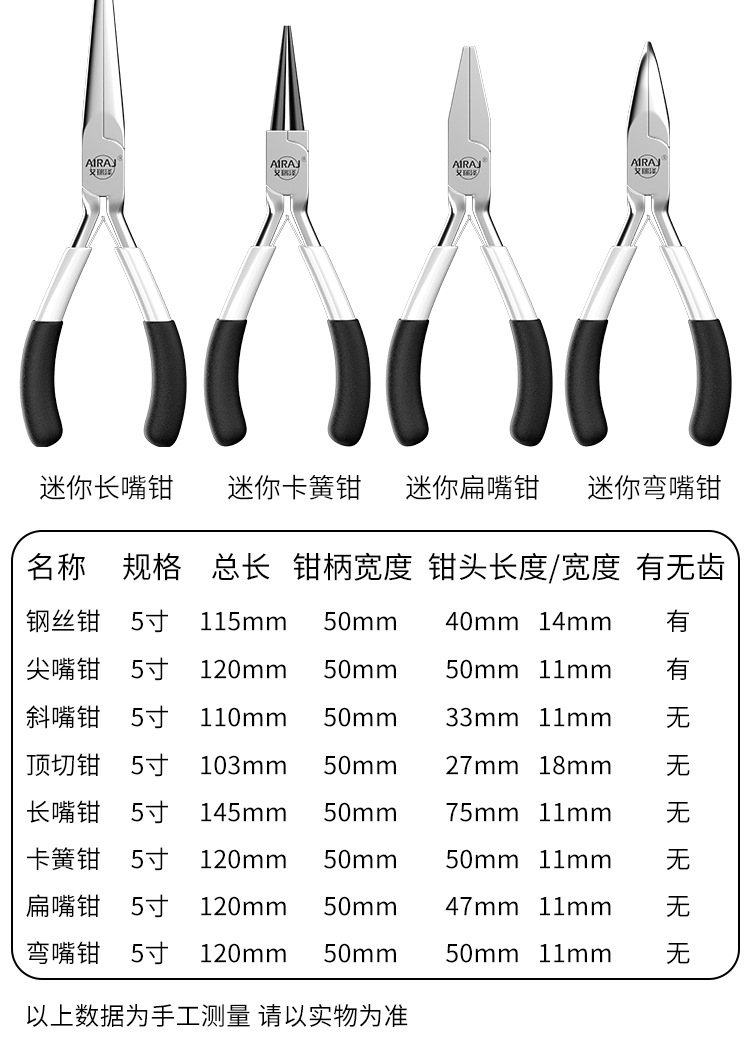 • 5inch 미니 곡선 노즈 플라이어, 500개/개, 0.06kg/개