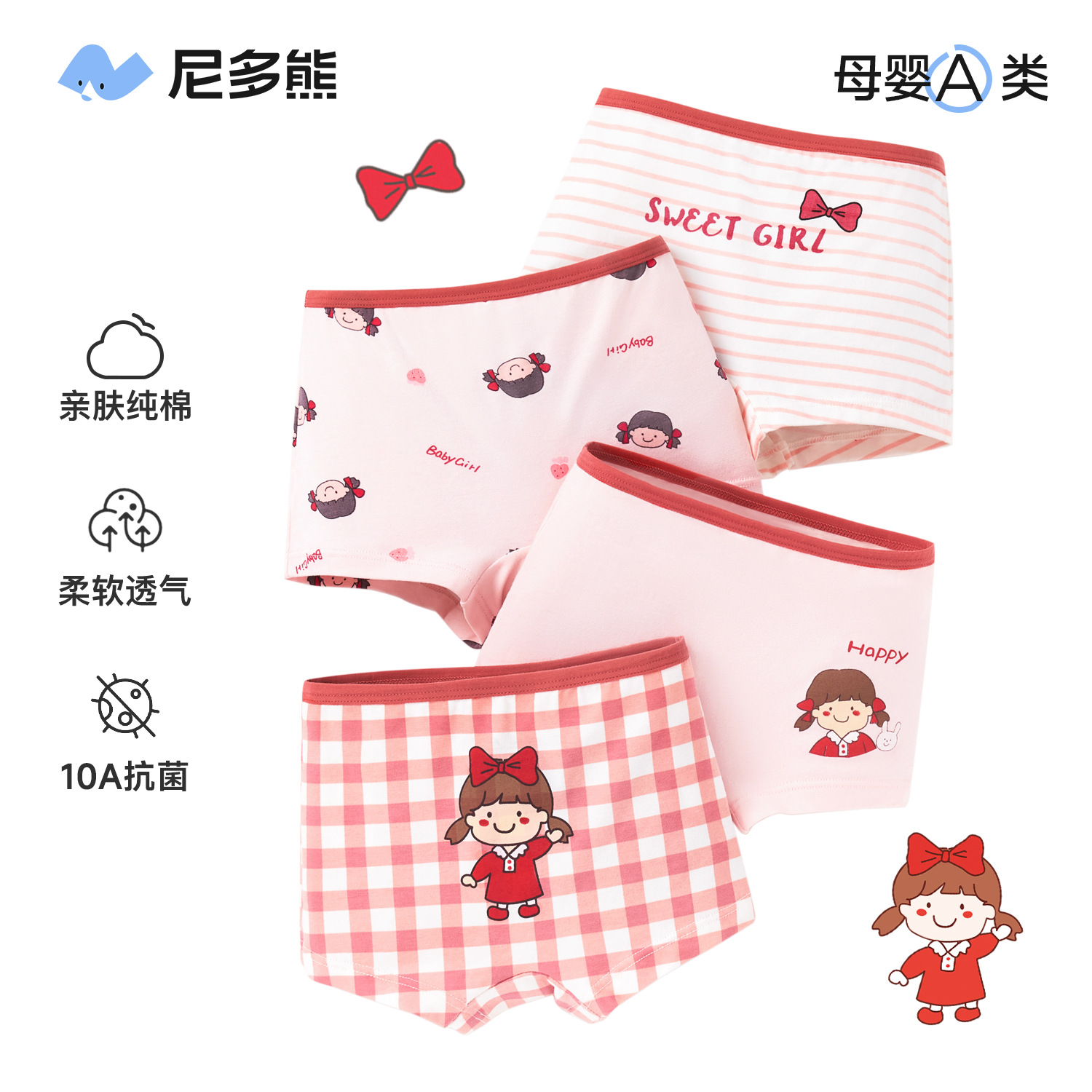 [컬렉션] 순면 40수 항균 여아 속옷, 아동용 반바지, 여아 사각팬티, PP가 없는 여아용