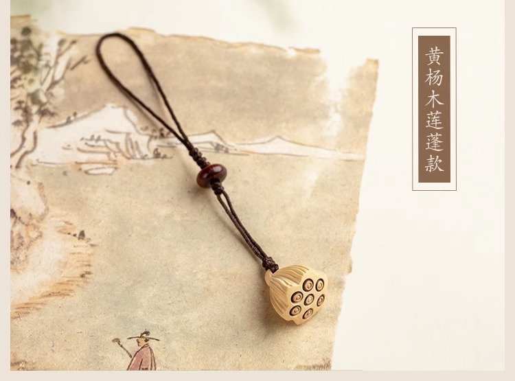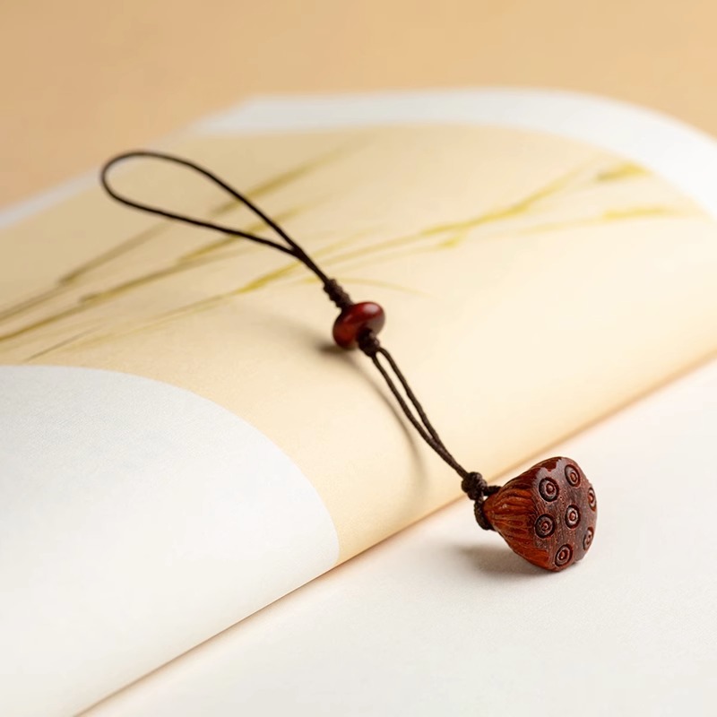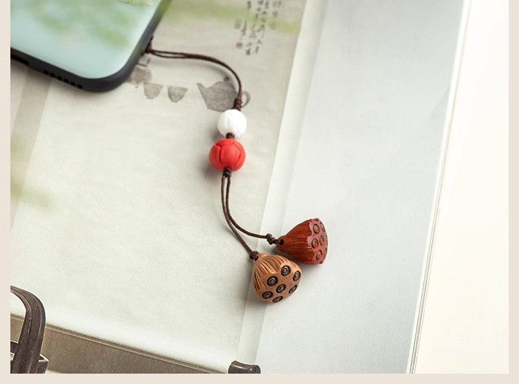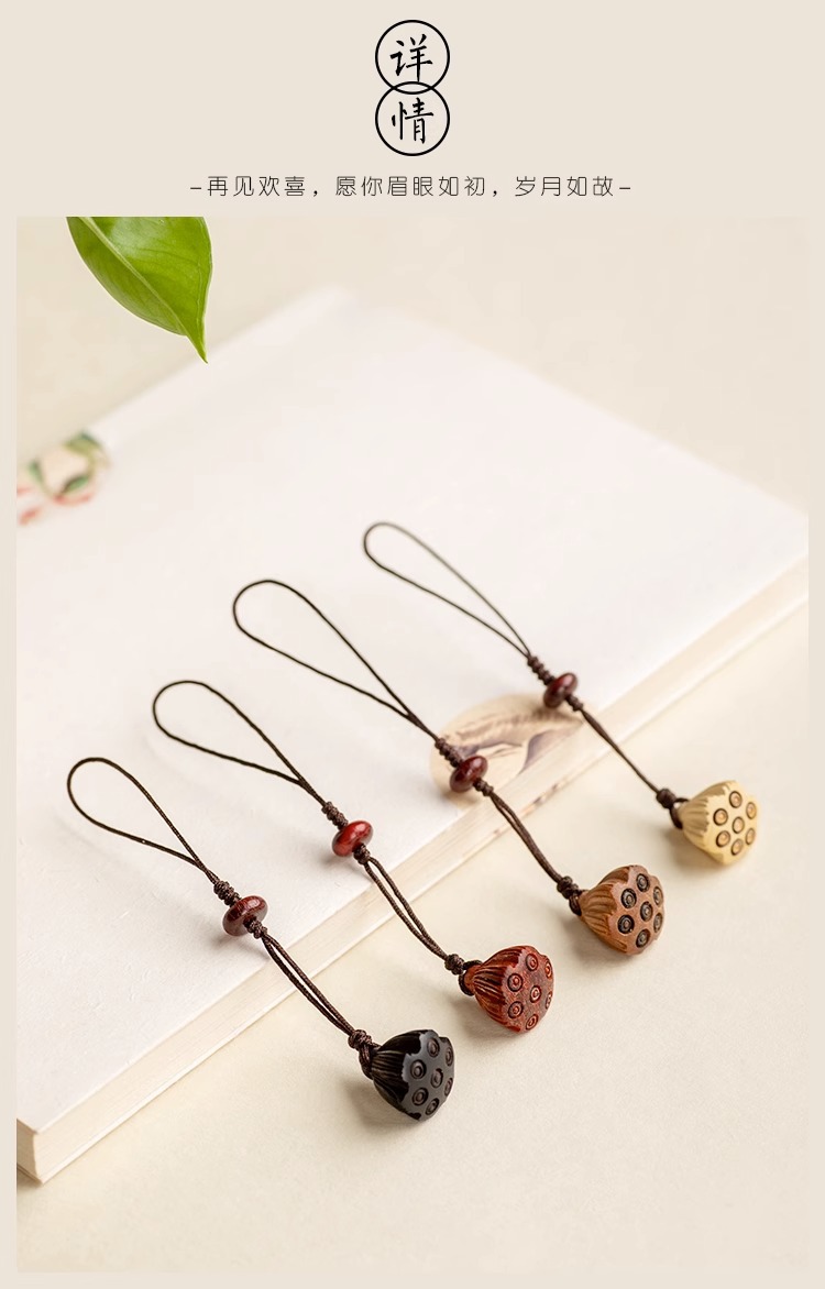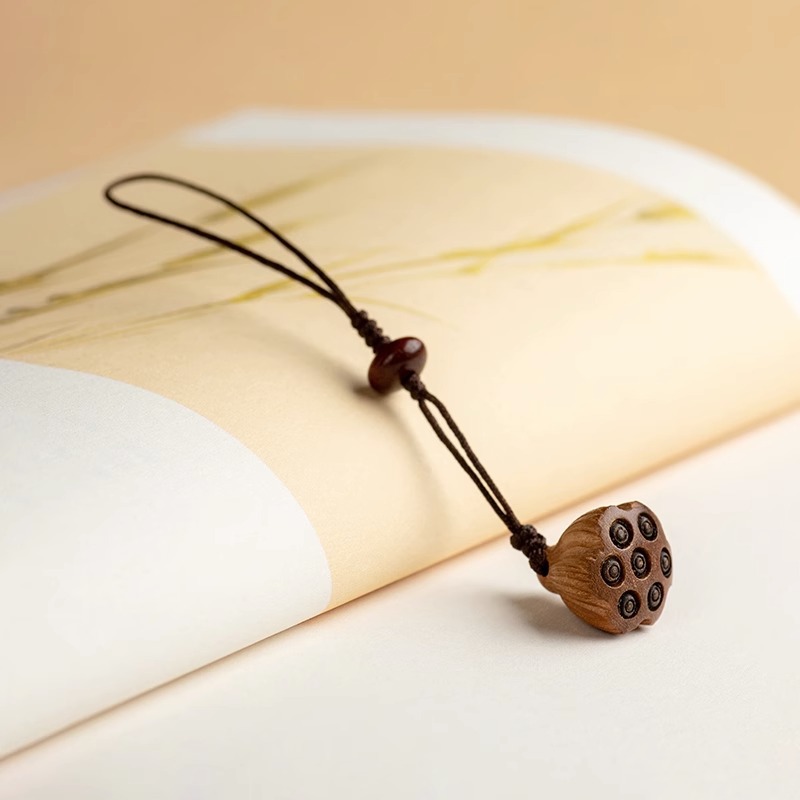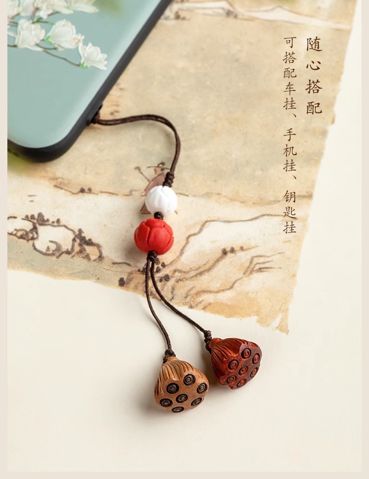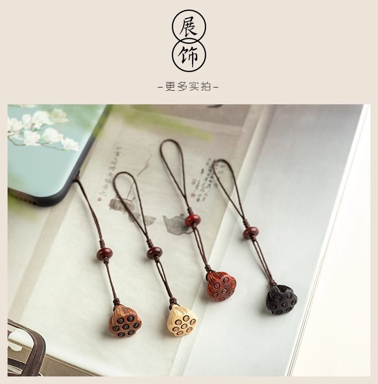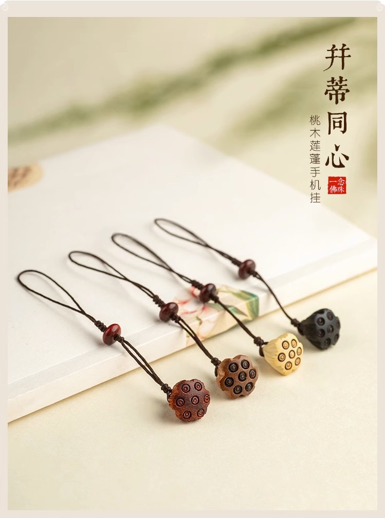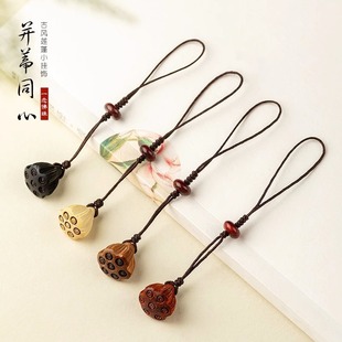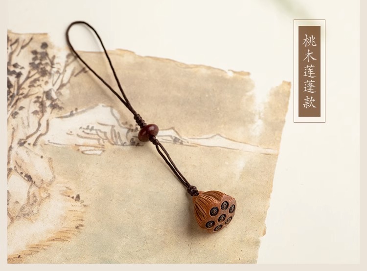 桃木莲蓬小巧挂坠檀木手机链女士古风编绳钥匙扣挂件出入挂绳挂饰
