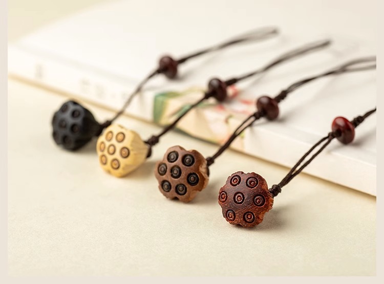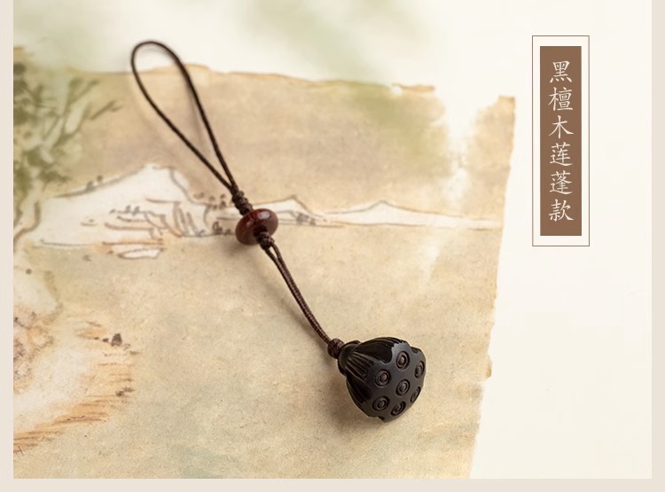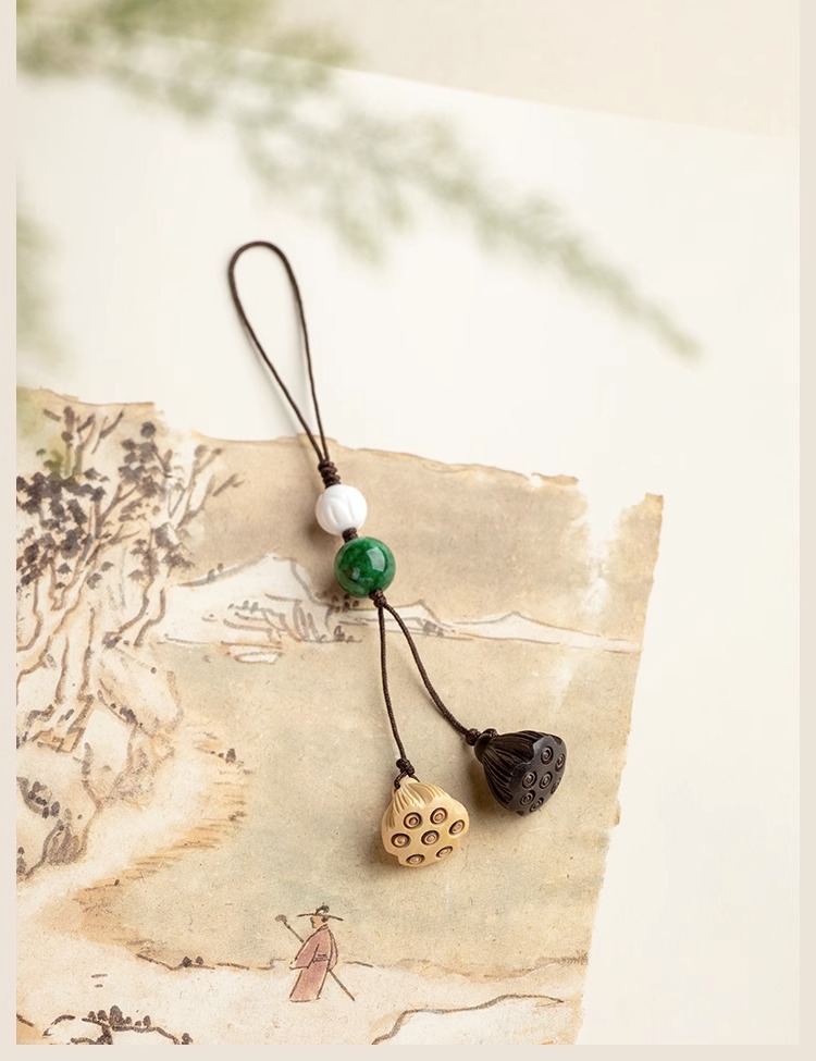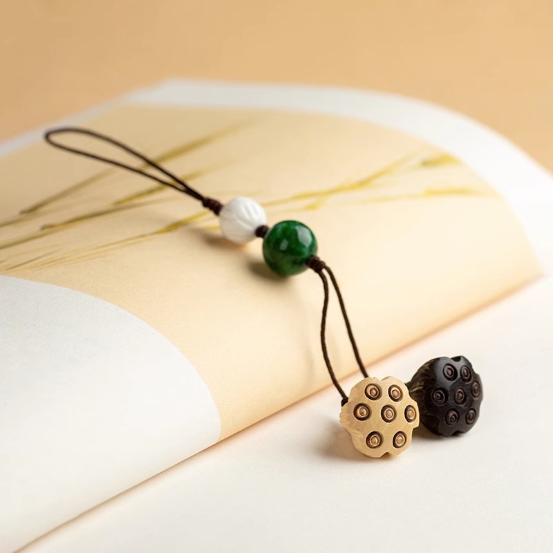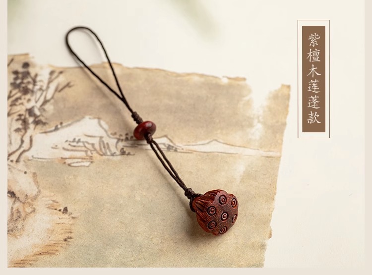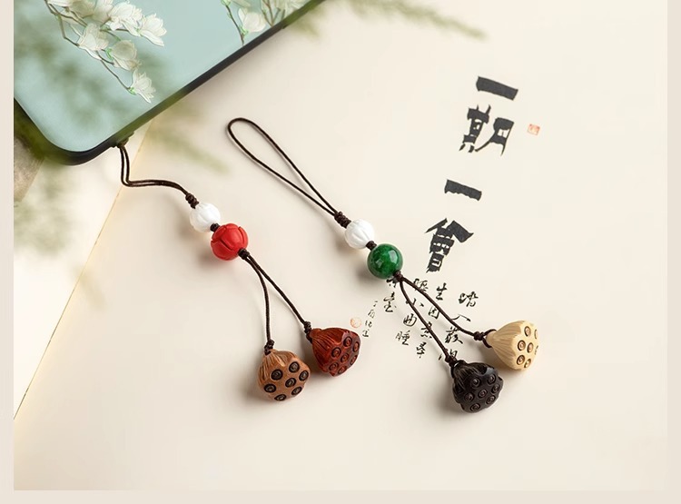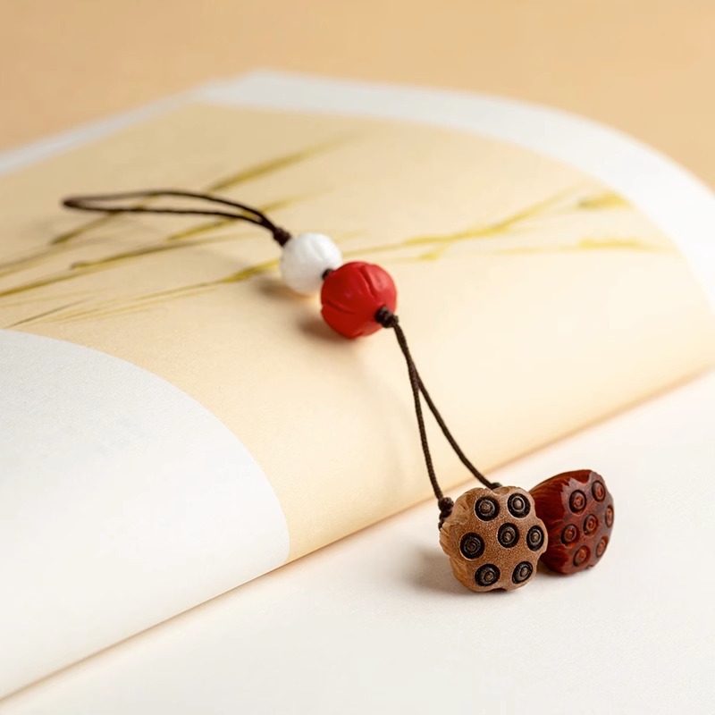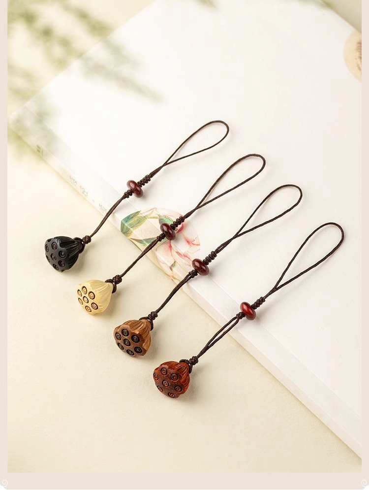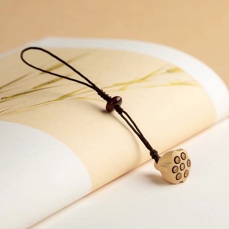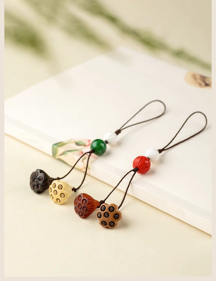 桃木莲蓬小巧挂坠檀木手机链女士古风编绳钥匙扣挂件出入挂绳挂饰