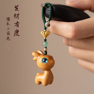 一路平安檀木小鹿汽车钥匙扣挂件男女可爱发财有鹿手机链创意礼物