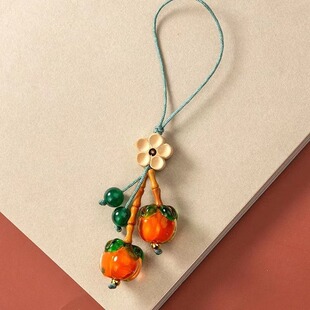 柿柿如意琉璃钥匙扣原创小众精致手机链挂链厂家一手货源特惠批发