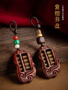 天然如意紫檀算盘汽车钥匙扣创意男士挂件女士款吊坠链个性钥匙绳
