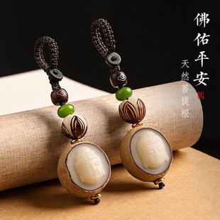 原籽菩提莲花高档汽车钥匙扣手工雕刻佛头观音钥匙链平安挂链男女