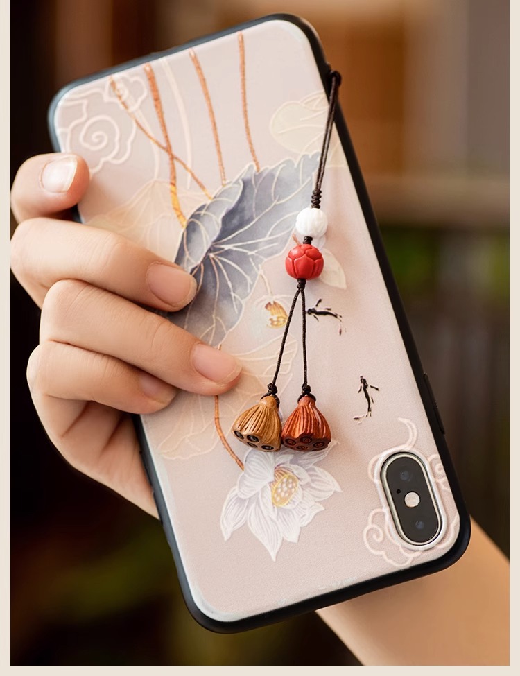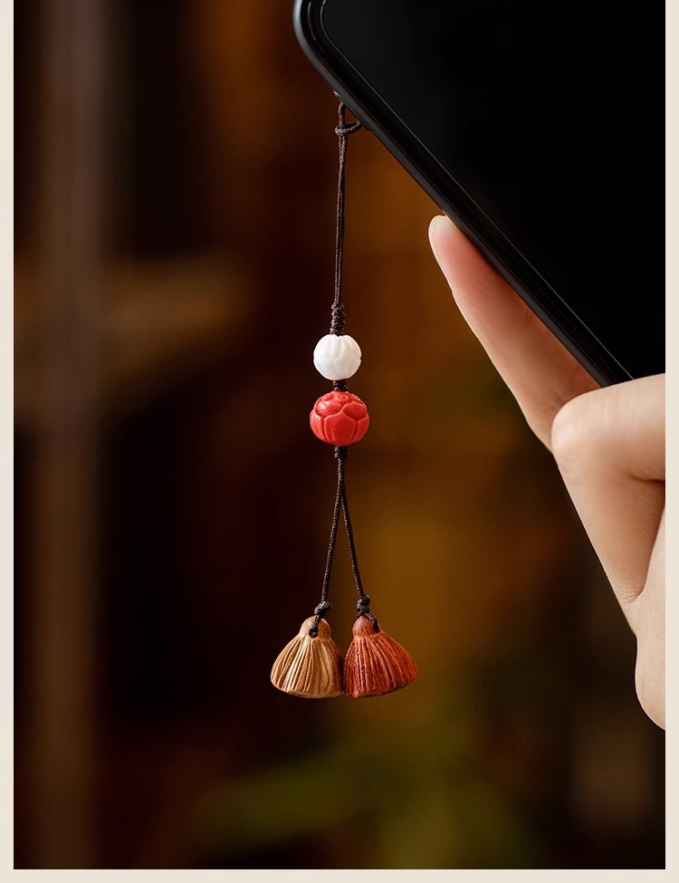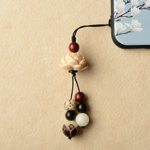 복숭아 나무 연꽃 작은 펜던트 백단향 휴대 전화 체인 여성의 골동품 로프 키 체인 펜던트 액세스 끈 매달려 장식품